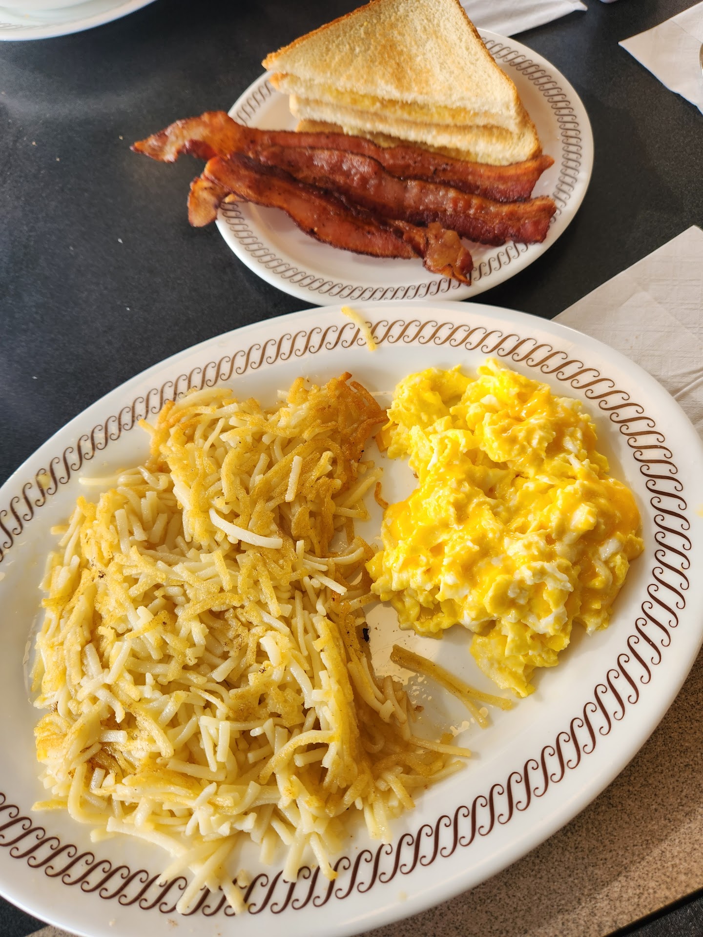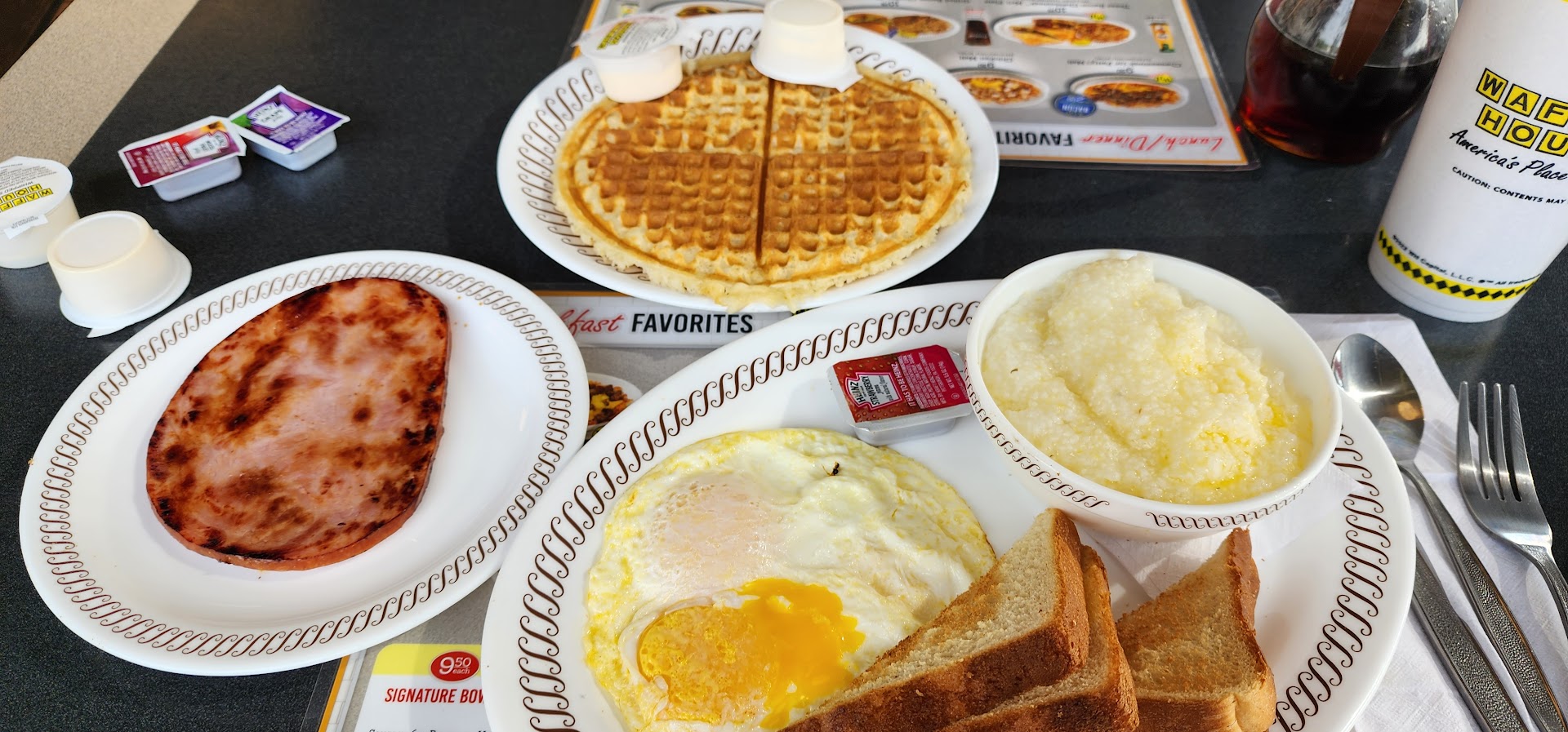 Ā Ā Ā Read moreI stopped here on the way back up to Chicago after visiting family near Augusta. I'm a fan of Waffke House as a whole, but this is a particularly good one. The service was prompt, my order was correct, and the food was delicious. Parking was also easy and that can be an issue with other WH locations. It is worth noting, though, that inflation has not spared the WH brand. The All-Star special used to be a good deal, but now it's the same menu price as ordering the items individually. A quick review of the menu reveals that even my old favorite cheap cheeseburger has jumped up a few hundred percent in price since my last visit (to be fair, that last visit was over six months ago since there are no locations near Chicago). Photo is of an All-Star special with ham, eggs...