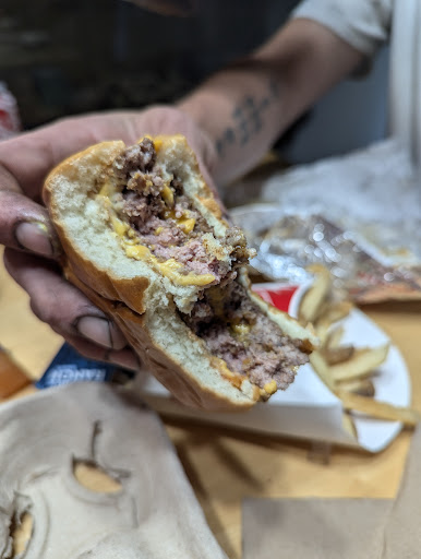 Walked into a CRAMPED "forced" (everything looked out of place) dining room, that was pretty clean and kept considering it was dinner rush. Employees were clean and well put together. They were very fast to acknowledge everyone who walked in, efficient taking orders and very very fast to serve our food (there were 4 of us) I was impressed at how quickly we got our food. And then we sat down and opened the meals up and now I know how they were able to get people in and out without waiting forever for their order. One burger was borderline raw and so cold the cheese couldn't even get to room temp! Little lone melt ... There was less then a full squirt of ketchup, mustard and mayo with over ripe tomatoes, the chicken nuggets were cold and and super hard! Like they had been sitting for waaaaay past their time. Fries were okay but kind of undercooked and the soda (every kind we tried) was FLAT? and overly sweet . The PLUS side is they REMADE ALL of our meals, and it was "ok" .. but then again, it's "fastfood" not a 5 star Restaurant. So I guess , it...
