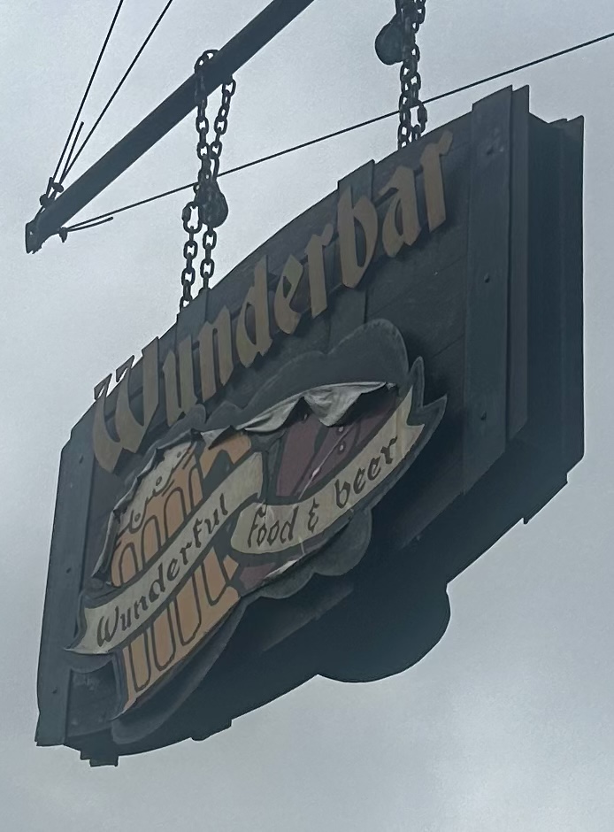 Super funky, hole-in-the-wall/dive bar feel, dark ambiance with wooden tables down one side bar on the other. This is a walk up order bar and then sit where youâd like. Friendly service, the sausages and pretzels are house made so a must try for anyone.
