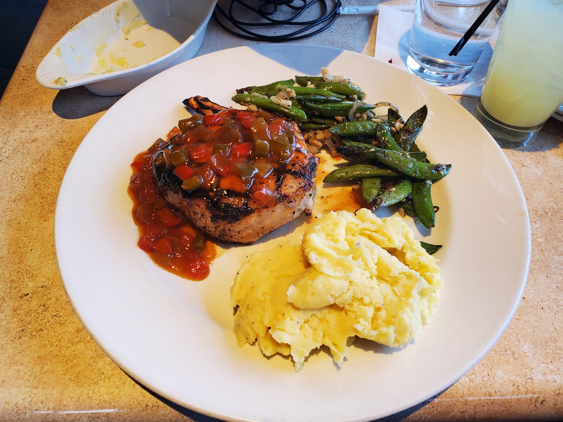 I'm not sure how there are comments about how good this place is. I've been to this restaurant twice and I should have learned from my first trip but I decided to give them another try. Big mistake. We sat at the bar and were attacked by gnats (it was like this the previous time too). I got the salmon which was an OK thawed out frozen piece of salmon. My asparagus was burned and had zero flavor. My guest got the strip steak and it was awful. It came with a side of mashed potatoes that didn't come out with the steak. When I told the server that we were missing the side I was given attitude and told that "it was coming." The bartender then brought them out and told us "oh I didn't forget about you even though it seemed like I did." The mashed potatoes were a joke. They were instant mashed potatoes out of a box and had zero good flavor. The steak also had zero flavor and was overcooked. My guest ate less than half of it. The bartender paid zero attention to this and even clearly heard us say how bad it was. She took it away and never asked how it was...probably because she knew what the answer was going to be. I'll never bring business back here. It was embarrassing to have an out of town guest at this...