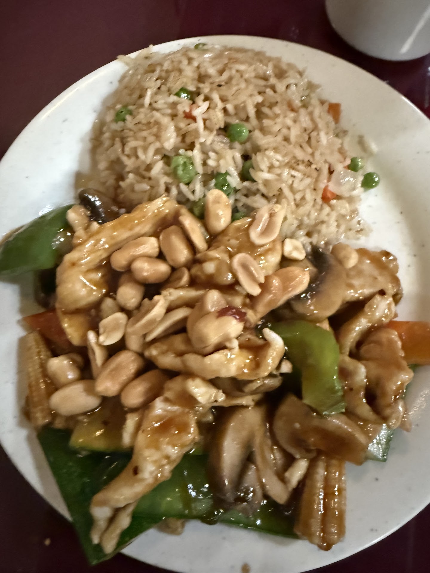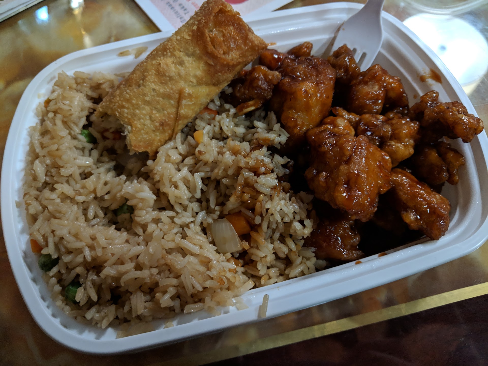 This is a generous 3 stars, it really is a 2.5.. Got the crispy wonton strips for kids while figuring out apps/order, the cost 2 bucks which was fine i guess except the were undercooked and greasy. I got hot and sour soup that was a touch below adequate.. Huge quartered raw button mushrooms, a few bland pieces of tofu.. Spice was good, but just not that great of flavor. Wife got an egg roll, looked like it was from Sam's club.. We all ordered general tsos. It was ok. Wasn't all white meat, but not too fatty, breading was ok, and it was decently crispy. Chicken was well sauced, But no sauce left for rice.. The fried rice was pretty good, the service was ok considering it was a girl that honestly maybe 13.. I had To flag her down for refills and she never checked on us but whatever.. She was polite..enough..i guess.. Anyway price was ok food ok. Wouldn't go again but...