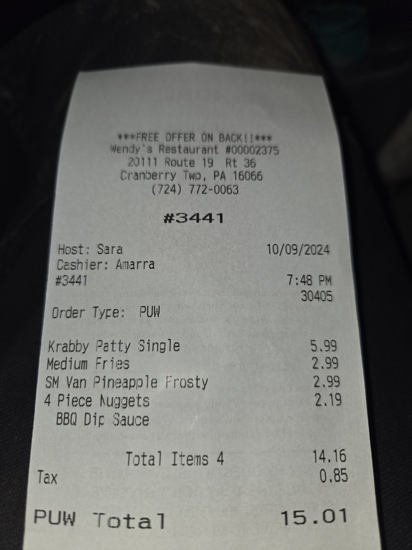 Read moreThe system says I visited this Wendy's a couple of weeks ago.... must have driven through the parking lot as a short cut to a better place to eat!! I don't eat at Wendy's anymore, maybe I've just outgrown their mediocre choices or just not willing to accept their bland tasting food and unremarkable menu choices. I'd worked at the Wendy's Cumberland Mall location, just north of Atlanta, as their sole morning prep guy and then I'd cook until the lunch rush was over while in college in the '70s. I had suggested to the area manager to diversify the cheese and bun selections. Add different size options for the Frosty, and go to fresh fries instead of frozen! Thinking that the "always fresh beef, never frozen" should be carried into the entire menu! They did give the better bun a run, but it ate too much profit and the sandwich makers would grab the wrong bun as they tried to get a head-start by listening to the customer as they ordered and would make the burger wrong... it was a mess. Just needed better training and have the cashier ask for the bun choice first.... simple!!!! What happened? They offered a full range of sizes of the Frosty to include the other size cups they already used for drinks. So much possibly.... now Wendy's is way down the list of burger joints after places like 5-Guys and Culver's have taken their market share out of the burger business!! What...