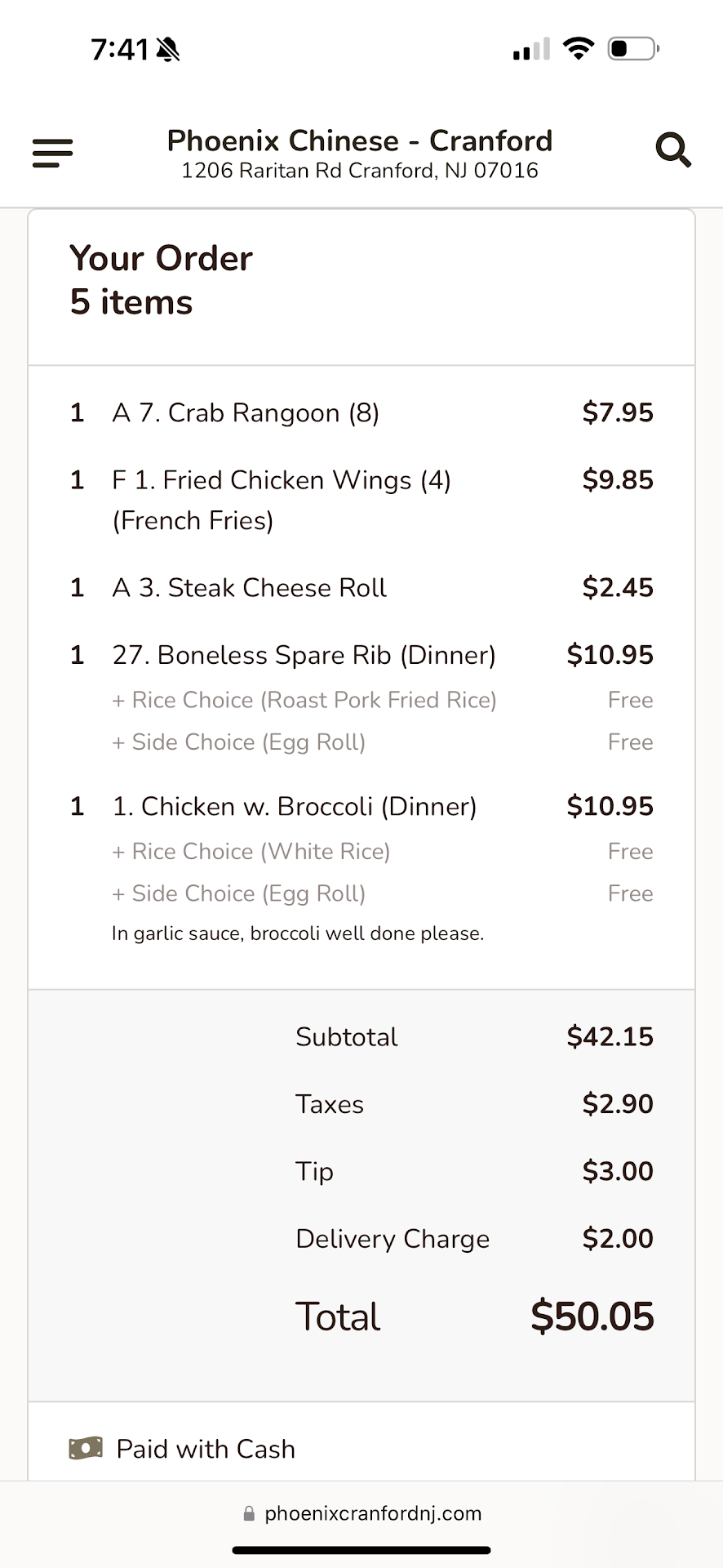 Read morePhoenix is my goto for chinese. I have had both delivery and eat in experiences. Todays' meal was delivered. It arrived hot and fresh, which is their norm. It also arrived ahead of the expected delivery time. I always prepare the cash so we don't have to fumble when the delivery person arrives. Today, I had two bills stick together and I did not notice it. The delivery person did notice and brought the cash back so I could correct my...