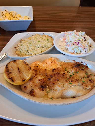 Read moreThe atmosphere was typical of any chain restaurant. Just average. The waitress was spot on and handled our table of 7 with ease. Just a few things, though. I ordered the baked haddock. There was a very thin, long bone in the fish that I didn’t notice until it wound up in my mouth. Not cool, but it was fish and that can happen sometimes. The bread crumb topping was burnt and flavorless. Literally no flavor on this entree. I’m diabetic and didn’t really want potatoes or rice, and their broccoli is literally just run of the mill, unseasoned, more than likely frozen and microwaved broccoli. None of the sides are diabetic friendly, or appetizing. So, I was hoping to be able to substitute one of the two sides with a cup of their French onion soup which is phenomenal and was told they didn’t make substitutions, and that I would have to pay close to $8 for a bowl as an appetizer. Not cool. I didn’t opt for that. I instead opted for just one side of coleslaw. They gave me two, which I would never eat two, so one undoubtedly needlessly was wasted. The coleslaw was also extremely flavorless and soupy/runny. I come here a lot and my fiancé usually gets a burger plate that he is very happy with. I usually never get an entree, I usually just get onion soup and my friends get the wings, which they’re happy with. However, last night I decided to give an entree a shot. I found out that that probably isn’t a good idea if you’re on any kind of restrictions. You will wind up paying for stuff you won’t eat or can’t eat, and they “can’t” make any exceptions apparently. Waste of money for me. Pretty disappointing. Would’ve been 1-2 stars if not for the good service from our waitress...