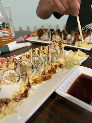 My official score is 4.5/5 stars. Came here with my girlfriend for a late valentines day dinner date. We ordered smoothies and sushi and some fried ice cream for dessert. Upon entering the building, I was surprised to see how large the seating area was. On a tuesday night, it was nice and quiet, and we had the full attention of the staff. The interior design was quite nice, with very appealing baby blue walls and lots of plants and flowers. The music was a great mix of merengue, batchata, and polynesian-style tunes from the late 1900s. The font and singage of the menus were styled well and easy to read. The seating area was a little echo-ey but that's not a big deal. The real deal was the food. I ordered a cilantro-lime salmon roll with some seafood salad in the middle. The roll itself was put together well and held up throughout the meal. The flavor was really interesting; kind of reminded me of ceviche. My one complaint about the sushi rolls we ordered was that they were not cut evenly at all. This isn't a big deal, I'm certainly no snob about it, but some of the pieces were so large they were impossible to eat, and others were really skinny and hard to handle with chop sticks. I also ordered a banana smoothie which was not very sweet, but tasted natural, and the ice was a great texture, not too coarse. The price point was one of my favorite parts about this restaurant. The sushi was very affordable, especially given today's economy and complex supply chains. All in all we spent about 75 bucks for 3 sushi rolls, 2 specialty drinks, and dessert. I meant to ask if they were BYOB while I was there, but this would be an awesome place to share a bottle of wine and spend time with friends. The service was very good, if not a little overbearing, but I'm not complaining. We had a great conversation with the hostess/waitress. I could see it being very busy for her if there's more than like 2 parties at a time. I hope this place can stick around because at least from the sushi we got, it was a delicious fusion of cuisines that caught my attention as soon as I heard about it. We will certainly be back to try to the...