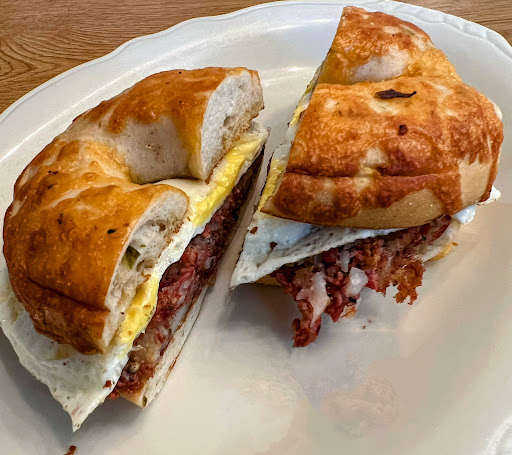 We have never been here and figured we would try a new spot. Parking is a little tight, especially if it’s busy. Not sure if there is side street parking available. The interior is what you would expect from a breakfast place, there is plenty of seating and staff here. The servers were attentive and friendly. We were told to take any table that was open, so I’m not sure if they seat by a list, or not. The menu is solid, but it doesn’t have a lot of options, it does have your typical combo’s and omelettes. Food was good, I had the hash, it was homemade, and I enjoyed it on a jalapeño bagel breakfast sandwich style. The only thing I didn’t really like was the homefries, they were very potatoey and a little bland in flavor. But all in all it was a good breakfast.