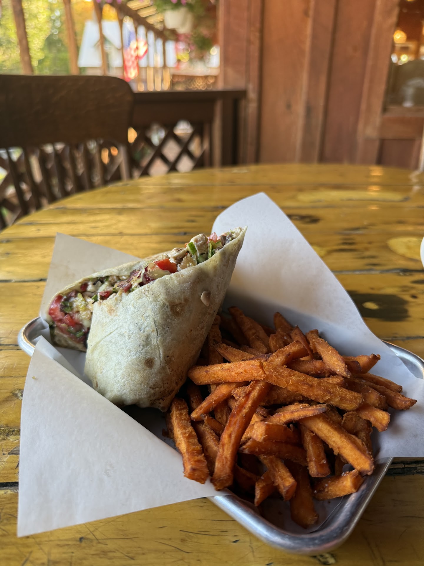 The food, however… Let’s get to the food, because oh man do I have a lot to say. I had the chicken wrap, which was labeled as the “specialty” here. I was also asked if I wanted it grilled or fried, and chose grilled.
