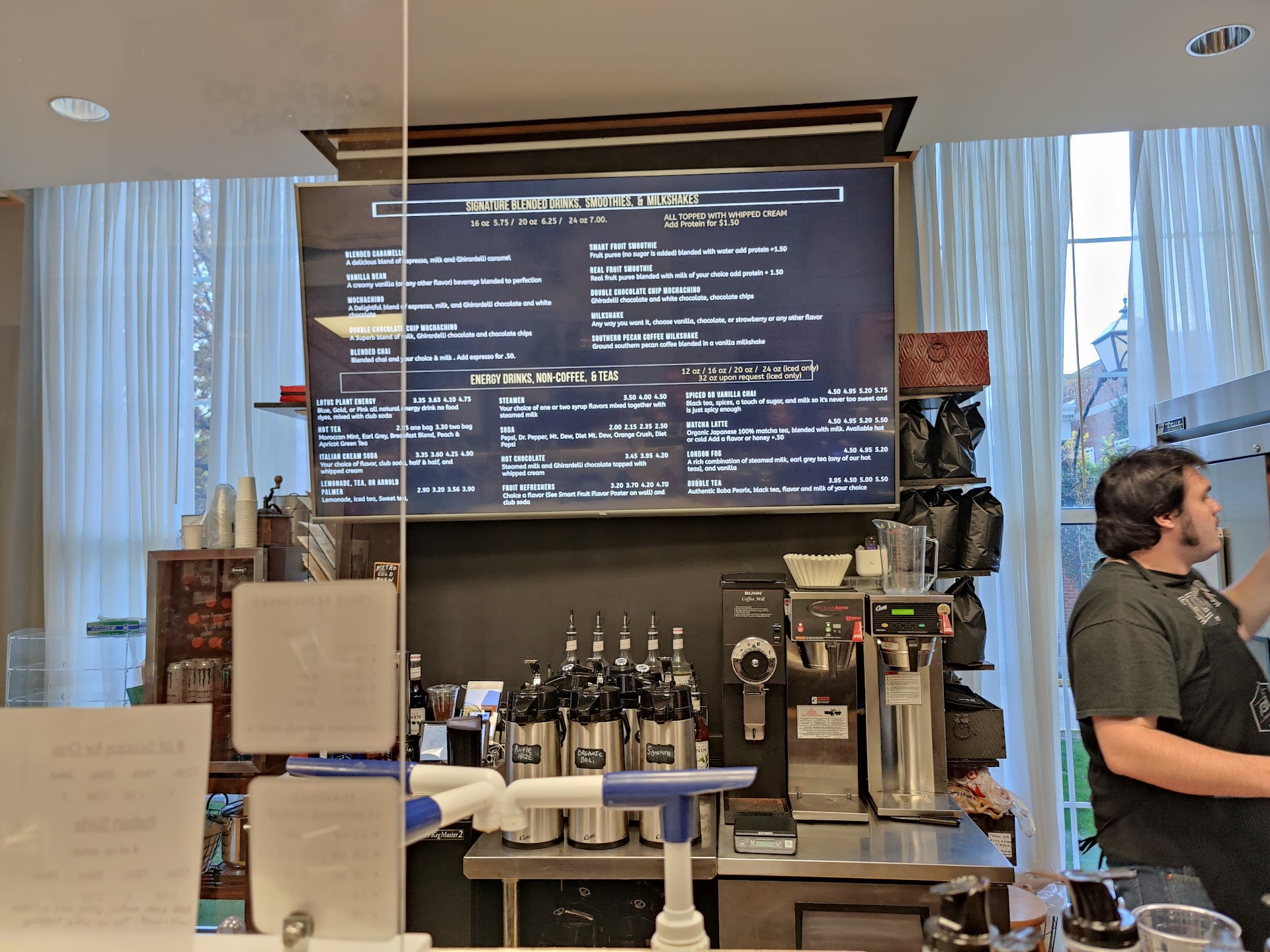 Let me just describe to you how perfect my experience at this petite coffee shop was. So, I walked into the library feigning for some hot coffee ☕️ (although I am usually a cold brew type of fellow) I enter 1832 Brew (just "The Brew" to those on campus) and order nothing more than a small, 12 Oz, drip brew coffee (Dark roast BTW). LET ME TELL YOU! This cup of coffee was done and paid for in less than 30 seconds! The speed at which this man worked was incredible (Byron I believe it was) Along with this there was the COMPLEMENTRY COFFEE BEAN WITH THE COFFEE!!! I mean it's 8:00 AM out here and this man is giving me the works! Outstanding! Other than that I have to say the atmosphere around The Brew is extremely cozy, the chalkboards are always a good pick me up & provide wonderful aesthetic quality to this small coffee shop. Oh yeah, I forgot to mention, this place is tucked inside of Wabash College's Lilly Library. This is a perfect place for a coffee shop since you can get really tired in the library studying and reading old books 📚 😴. I highly recommend inviting friends to the Brew, no real reason...