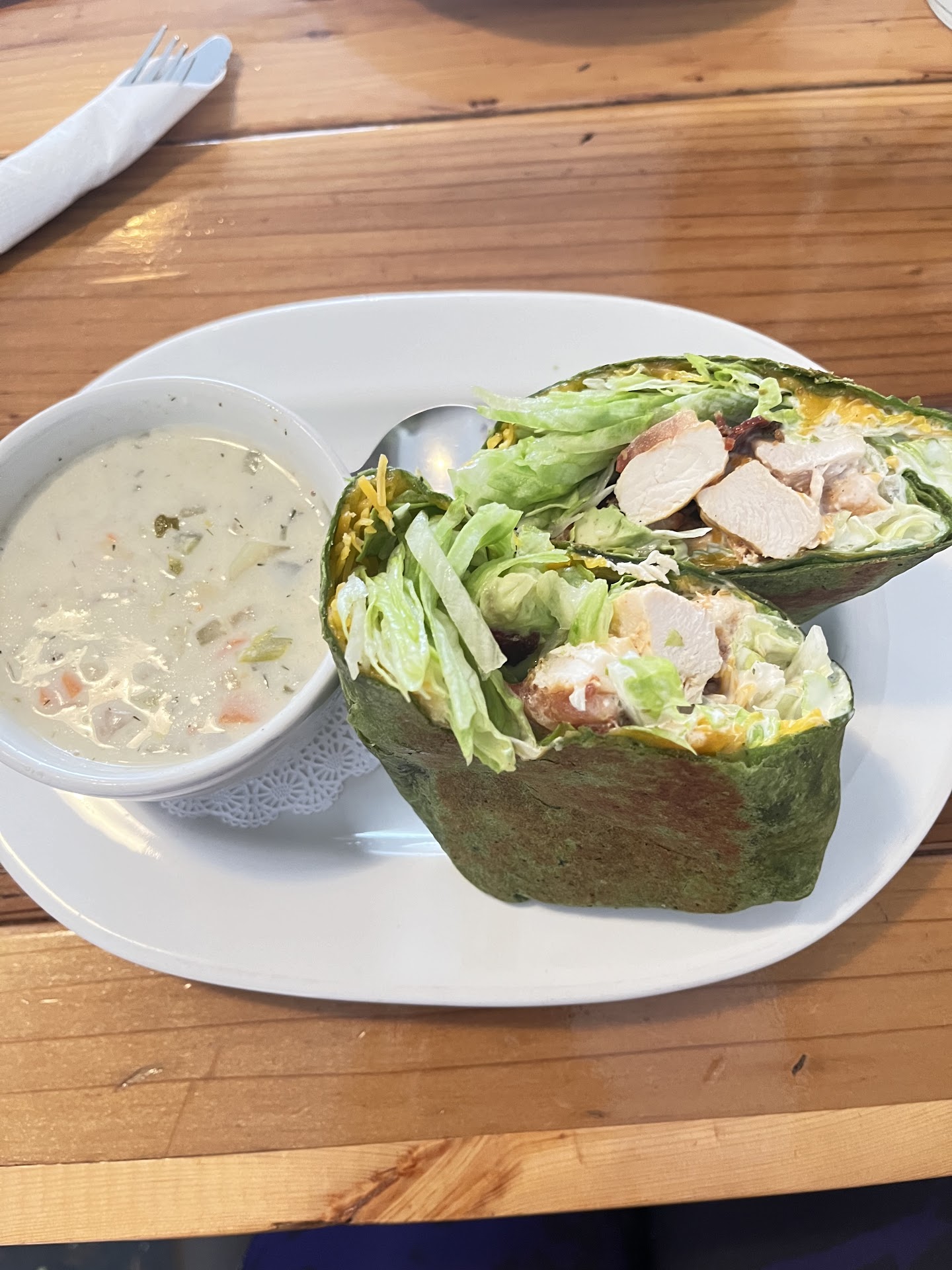 My friend and I went to this restaurant because we were looking for a good lunch, something kinda new, a restaurant we hadn’t already been before. It was difficult to find as there are no signs put on the street and it just blends in, but nonetheless the waitress (who I believe was the owner) was so friendly when we came in. We got seated immediately and it was a quiet, cozy yet lively atmosphere. We got our orders in not long after we sat down and got our drinks, and the wait was pretty decent. I got the chicken bacon ranch wrap and dill pickle soup which was absolutely soo delicious– best sandwich i’ve ever had. The soup complimented it very nicely. My friend got the special of the day, fajita pasta and that was pretty tasty as well. The price was perfect, very much worth it. I will be coming back for...