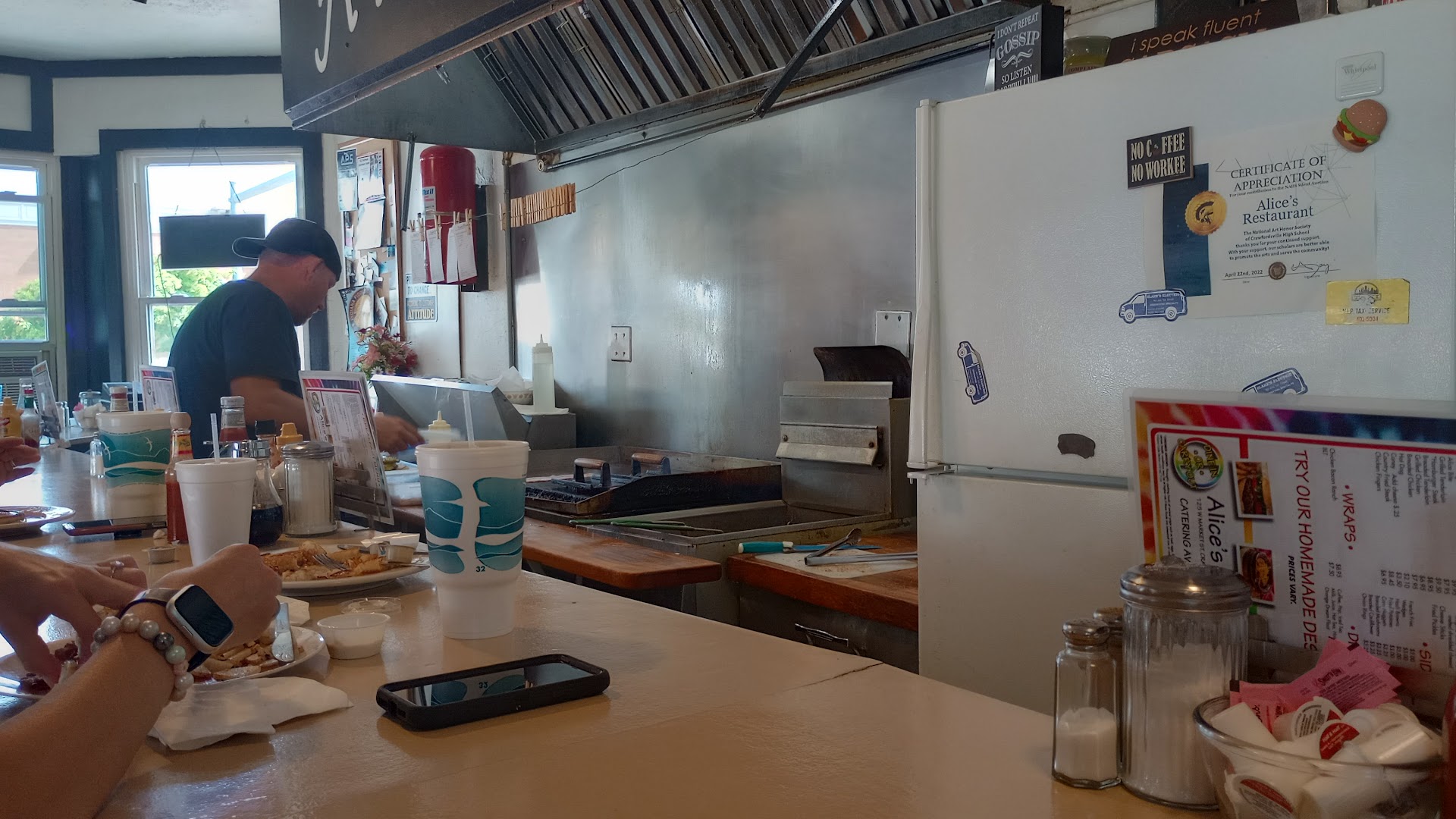 Read moreWe found Alice's while in town for a wedding and made sure to stop back in for a breakfast before we left. The menu is straight forward diner fare with zero pretense and delivers great value for the pricing. There seems to be a noticable effort to make as many items from scratch as possible from the honest understanding that fresh ingredients taste better. Is this a "scratch kitchen" posturing itself to attract tourists? Absolutely not. Not even close. But here's what hits the grill if you order the mushroom melt: a generous, 80/20, hand formed, groud chuck patty and a pile of fresh sliced mushrooms. Nothing canned. Nothing extruded at the factory. Alices is a great exaple of a place that wants you to love what you had to eat but would justifiably roll its eyes at anything approaching...
