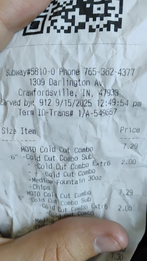 Read moreâď¸âď¸âď¸âď¸âď¸ I stopped by Subway today and ordered the meal of the day a Cold Cut Combo with chips and a soda and I was beyond impressed. The service was absolutely amazing. Paris and Kendra greeted me with big smiles, were super friendly, and made my sandwich exactly the way I wanted. They worked quickly but still took the time to make sure everything was perfect, which made the whole experience stand out. The atmosphere inside was clean, welcoming, and comfortable a great spot to sit and enjoy a meal. As for the food, it was fresh and flavorful. The Cold Cut Combo was stacked just right, the veggies were crisp, and the bread was soft. Paired with the chips and soda, it made for a simple but satisfying meal.and very reasonably priced. Overall, Subway nailed it today thanks to Paris and Kendra. Excellent service, great vibes, and food that hit the spot. Iâll definitely...