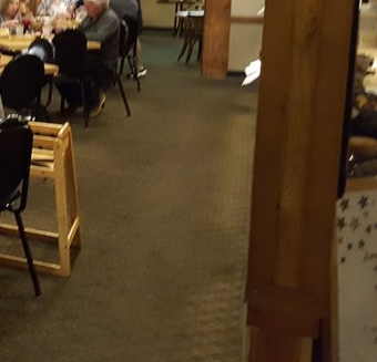 The place smells like an old church basement. The carpets are extremely dirty! (You can see in the photo. No that's not some kind of shadow, its just cleaner close to the walls were people don't walk) Not just old, or a stain here and there. It was absolutely filthy! If the dining room is that dirty, it makes you wonder what the kitchen (that customers don't see) looks like. The texture is falling off the cracking ceiling, huge cracks in the walls.