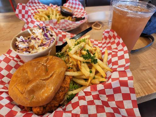 Read moreFirst time visiting this restaurant. Friday afternoon lunch. Wasn't too busy. We ordered almost right away and received our food at the table within about 5 minutes. The staff was very pleasant and helpful. The location was a slightly rebadged version of the previous chain that was here. It was nice and clean. Felt a little like a cafeteria. My sandwich, which is called the Citybird, was available as a meal, which I ordered. Thr fries were good and seasoned well but could have been cooked a bit longer. The sandwich has a great sauce, and the pickles had good flavor. The brioche bun was fresh. The slaw was very good but was piled too high. When I picked up the sandwich off the plate, 2/3 of it fell off. There was no sporks so I couldn't eat that. The featured sandwich was a bit of a letdown for me. I figured it was a full chicken breast for the price, but it turned out to be 3 small tenders. With that said though, the chicken was tasty, hot, and had a good flavor to it. If I return, which is possible, I would probably just get a tenders meal and skip the bread. All in all a good meal, it just left a little...