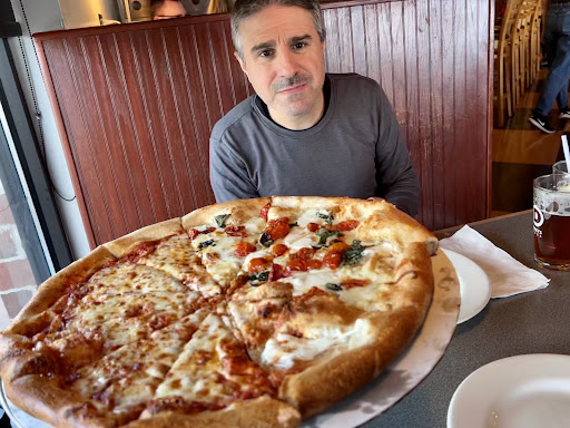 "TAKING PIZZA TO THE NEXT LEVEL". Our family stopped here today for our first ever visit to Dewey's Pizza. And, how many things do we all love about this place? Of course, it all starts with the pizza, which is fantastic. They really live up to their tagline. We had a Dom Corleone and my wife had a gluten-free Mediterranean. Both were delicious. The staff was amazing, friendly and attentive. Our waters were constantly filled and someone was always available for extra requests. The place was packed when we arrived at 7pm on a Saturday night. We made a reservation using the app Nowait which got us to the front of the line when we walked in. The restaurant was clean and smelled good. Floors were shiny and the windows were clean. There were a bunch of kids totally entertained by the guy in the window spinning the pizza dough and it reminded me of the old days when I was that age and such sights were more common but no less entertaining. I am often pleased with a restaurant but then disappointed with the cleanliness of the restroom especially on a busy night. In this case, the manager Drew was on top of everything! The restroom was a pleasant experience for a welcome change. On top of it all, they put a premium on promptness (often lacking at pizza places). But at Dewey's, they target a maximum of 15 minutes. Our pizzas were closer to 20 minutes. We hadn't even noticed as we were engaged in conversation but we received a substantial discount which I was not expecting nor did we deserve. We were all so full, so why did I want to order another pizza on our way out? They all looked sooo good. Can't wait to come back. And kudos to Sam and the other wait staff for a...