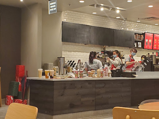 Read moreI came in for a drink 30+ minutes before I had to be at work and still ended up being late because my order took so long. I ordered ONE drink (it was an extremely simple order, no special requests), it turns out they had made me the wrong drink, never called my name, and left it on the counter for multiple minutes before I had to go and ask where my drink was. Not to mention there was one person in front of me in line. I shouldn’t have to reserve 40 minutes out of my day for a drink that takes two minutes to make. The inside was absolutely filthy too. Floors were stained and sticky and the tables were covered in food crumbs, pretty disappointing in the middle of a global pandemic, you would think the standards for cleaning would be much higher. They were clearly understaffed and I do think they were trying their best, but this is the fault of management for not giving these baristas the manpower they need to balance mobile orders, in-store orders, and keep up with cleaning...