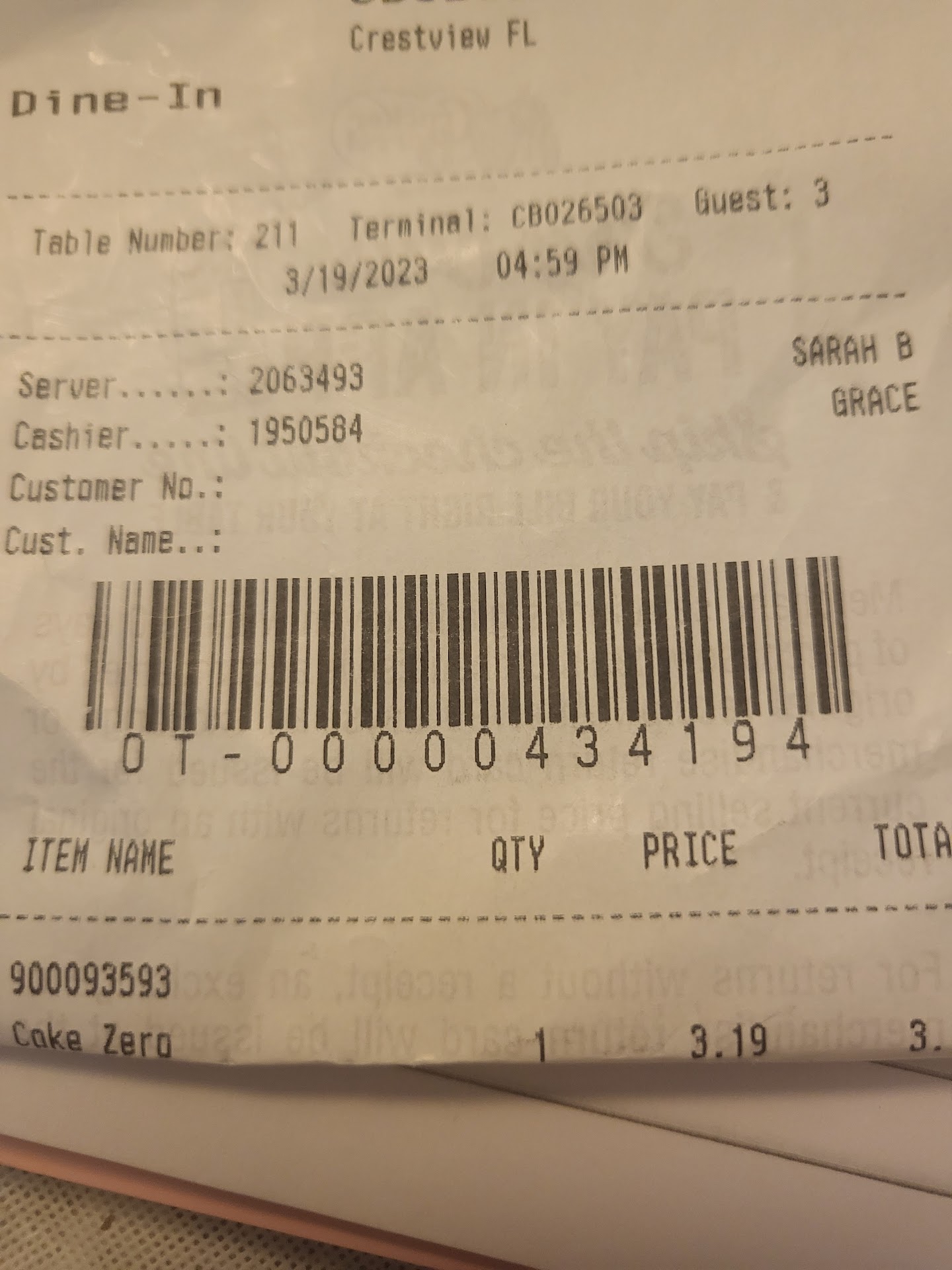 Read moreTo start the evening off at Cracker Barrel we asked the Hostess, Brooke if our table of 12 could be seated once 10 had arrived as the last 2 would be late. Brooke proceeded to state that policy was all in the party had to be present in order to be seated. We would have understood completely if it was busy but they already had half of the dinning room closed down because of the lack of guest in the restaurant. So we then asked for the manager and the manager, Paige stated that it was policy the whole party has to be present but it would be ok to be seated with our 10. Once the party of 10 had arrived we got seated and the waiter, Mathew immediately seen our large table and he aggravatedly sighed. Mathew made half the table repeat ourselves when we ordered and still got the orders wrong. Mathew took a while to get our drink orders and once we finally received our drinks most of us drank all if not most of the drink. Never once did a single person at our table get asked if we needed a refill. We asked for refills as we ordered food even. Once the plates started to come out he started with the first half of the table, and then proceeded with the second half then asked if there was anything missing. Myself and 1 other family member at our table did not receive a plate. We asked Mathew where the plates were, he raised he voiced and and stated he just found out from the back they ran out of the chicken and dumplings that we ordered. Immediately we asked for a manager. Why is it that 4 people total at the same table order the same meal and when 2 of the plates can't be served we aren't told until the entire table is being served and Mathew acted as if he had no idea and got very rude when questioned. We asked for the manager yet again, there was no need for the reaction he gave. The manager Paige did well with deescalating the situation and replaced the 2 missing meals as well as compensating the 2 new ones. We still had to ask another waitress, Tamara for assistance so we could get refills and to-go boxes as Mathew never came back to our table and no one else was assigned our table. We had to ask Brooke to even get our tab from him so we could just pay and leave. Cracker Barrel was a place my family had gone to for years in Crestview, this has been the worst experience I...