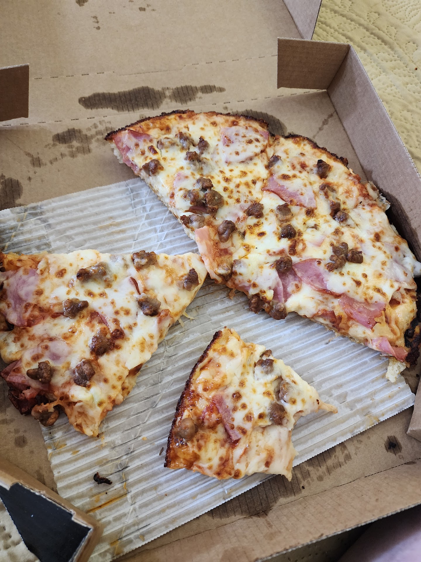 Read moreI ordered a deluxe pizza that only comes with two meats, and the rest are vegetables. My pizza was missing the Italian sausage and was light on pepperoni. How do you miss one of only two meats on the pizza? It was supposed to be the New York style, which is six extra large foldable slices instead of the usual 8 cut regular slices. This was smaller and cut into six small slices, more medium than large. It has a hand tossed crust thickness. NY style is thin with six large foldable cuts. I've ordered the New York style many times before. See my photos too, there was no sausage on it. I was also overcharged since I paid for an extra vegetable ingredient only to have a main meat ingredient left off. It's truly hit or miss with Domino's, but I do love them and will continue to order because they at least...