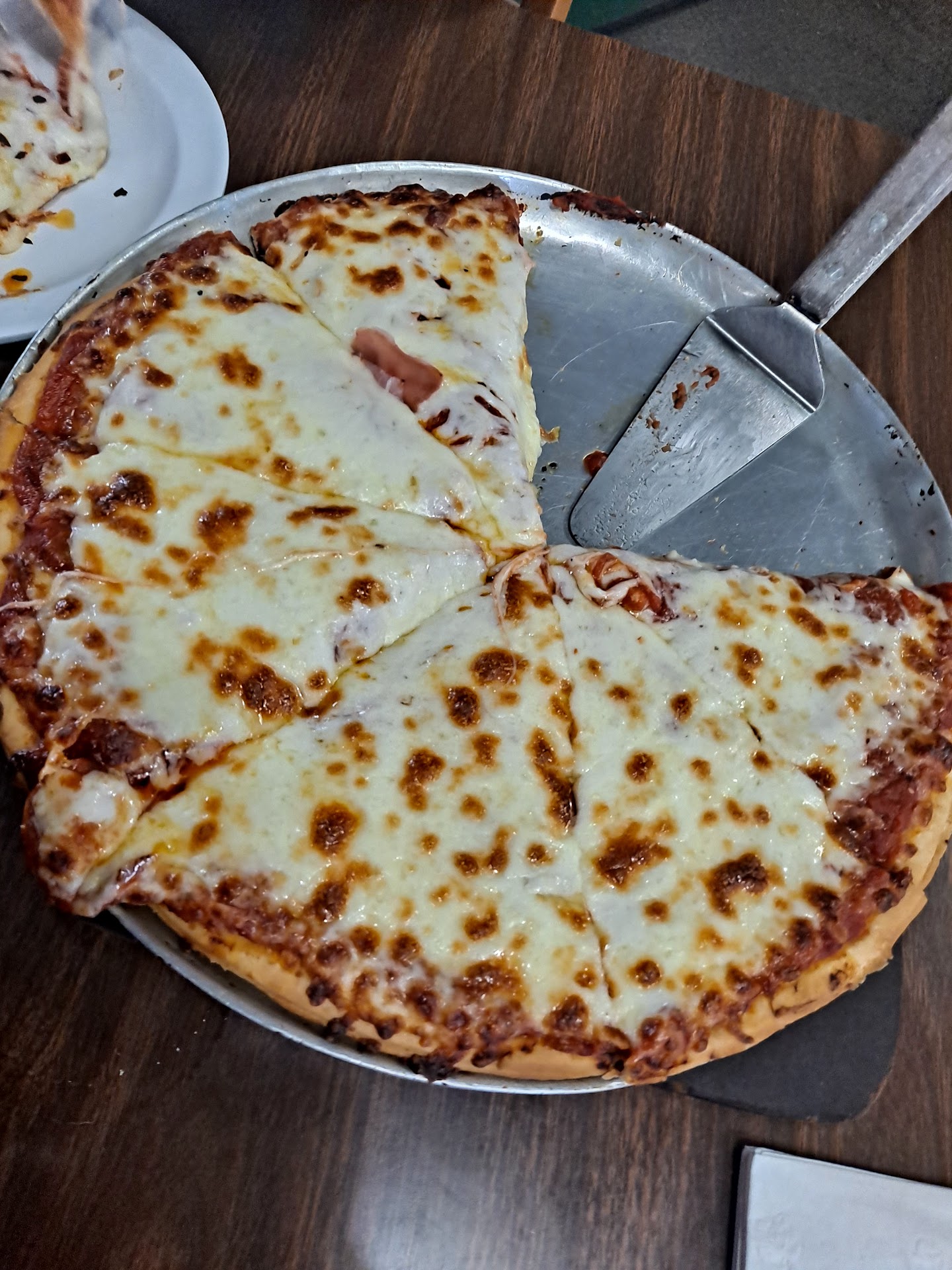 This place has been on the top of my list of restaurants I wanted to eat at and finally this 23rd day of July (Fri @5pm to be exact) I am finally getting to!! At first I didn't think we were going to find an open table but luckily a man waiting for his carry out meal moved from one so we could sit. If I was scoring just on the food itself then it would've had 5 🌟 no doubt but since the service is also being reviewed thats why I only gave it 4 🌟. I finally asked for a menu after we sat at the table for at least 15 minutes if not longer, we never got a refill on our drinks, and by the time our pizza was brought to us we had been sitting there for an hour and ended up eating a slice then paid and left with the rest. I wanna point out that our waitress was very sweet young girl with long straight blonde hair (didn't get her name). She seemed to be the one doing almost all of the work herself even though there were several others that basically were walking around in circles letting this young lady wait on all the tables, answer the phone, ring up pick up orders, etc. She never stopped moving or smiling! They definitely need to find more employees like her!! The pizza was the best I've had in this area by far! Great sauce, crust, and the cheese was awesome 👌! Definitely referring it to everyone I know( and don't)!