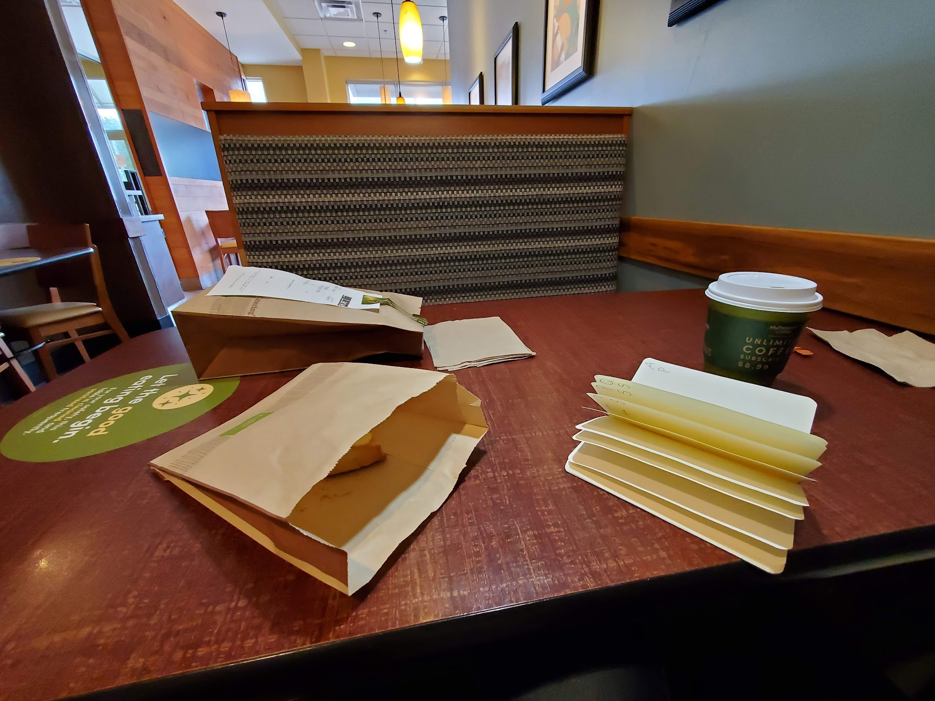 This place has gone massively downhill. I've been attending a weekly meeting at Panera so this review covers the span of several months. EVERY SINGLE TIME they are out of something. No tomatoes, no baguettes or chips for the side (what adult wants a gogurt instead?), they substitute what looks like cheap grocery store bread on sandwiches because they are out of whatever fancy bread is supposed to be on it (and they almost never inform you ahead of time when they are missing or substituting items). One time they had a sign up saying due to an equipment malfunction they had no soup so I'm guessing that means the microwave was broken? I always get the baja chicken bowl and I've asked more than once for no onions and they always tell me it can't be done. It can be done online, and the way it is piled in the bowl it clearly didn't come out of a premixed bag - do they just not know how to enter it in the system? Once, we asked for Splenda and an employee told us they would bring it in a minute but then she never did. So we asked again and she said it should be by the coffee. When we explained we had already checked by the coffee, she came to look and then said they must be out. We asked her to double-check and she immediately found a huge box-full under the counter. Another time the tea dispenser was full of water because they were out of tea? Once, the green tea and lemonade dispensers were empty and the drinks had been poured into giant open containers that were left sitting on the counter. Customers had to reach over them to reach the straws and lids. 10 minutes later, the containers were gone and the dispensers were full so I'm assuming someone was cleaning the tanks, had stopped for a while to take orders, and then returned and dumped them back in after everyone had been moving around the open containers? Even getting someone to take your order can be difficult - we once waited 5 minutes, then poked our head into the kitchen to ask and the manager told us he was busy helping the crew catch up and that we'd have to wait or use the kiosk. The only reason we've continued to come back is the atmosphere is quiet and open enough to have our meeting comfortably. But we're wrapping up now and I'm glad I won't have to go back to that...