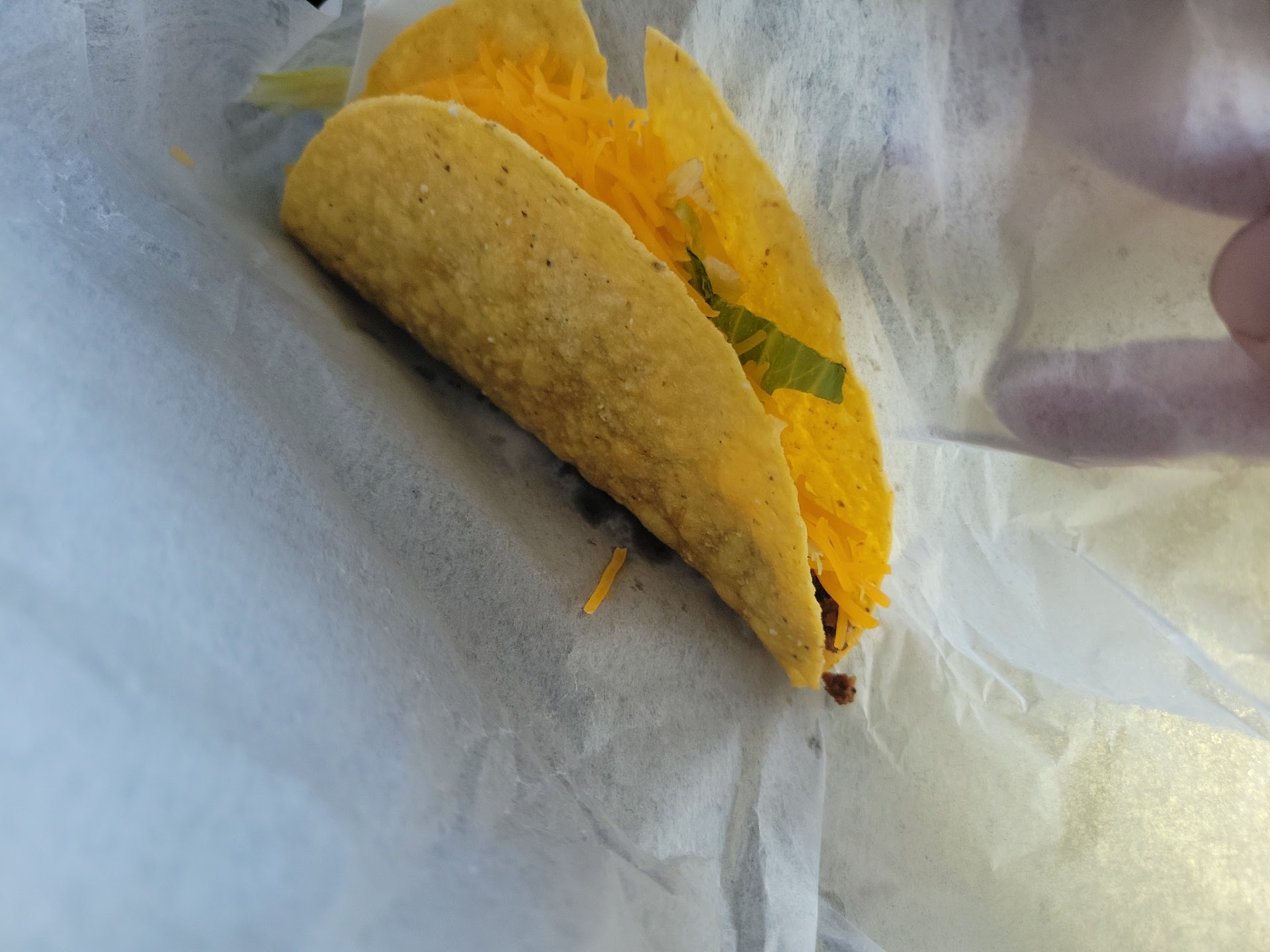 2 for a $1.29. Meanwhile, as of writing this, Taco Bell's charging you $1.19 for ONE of their tacos. And did I mention that the Taco Town tacos have like way more meat in them? LIke, probably twice as much meat.