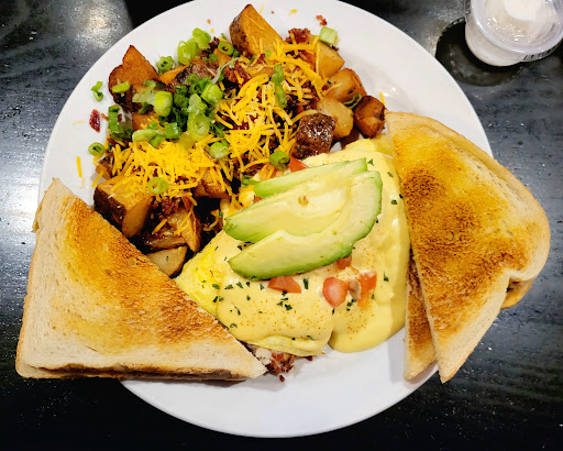 I ordered the Dungeness Crab Omlette, came with home fries and sourdough toast. I added "The Works" to the home fries which includes cheese, bacon, green onions and sourcream. Raspberry Tea for the drink. The omelette was by far the best omelettes I ever had! The crab was real, not imitation. It came with bacon crumbles, swiss cheese and hollandaise sauce. So full of flavor! The home fries were fried to perfection and I'm sure I didn't need to add "the works". My score was 10/10, would absolutely eat again and recommend to others.