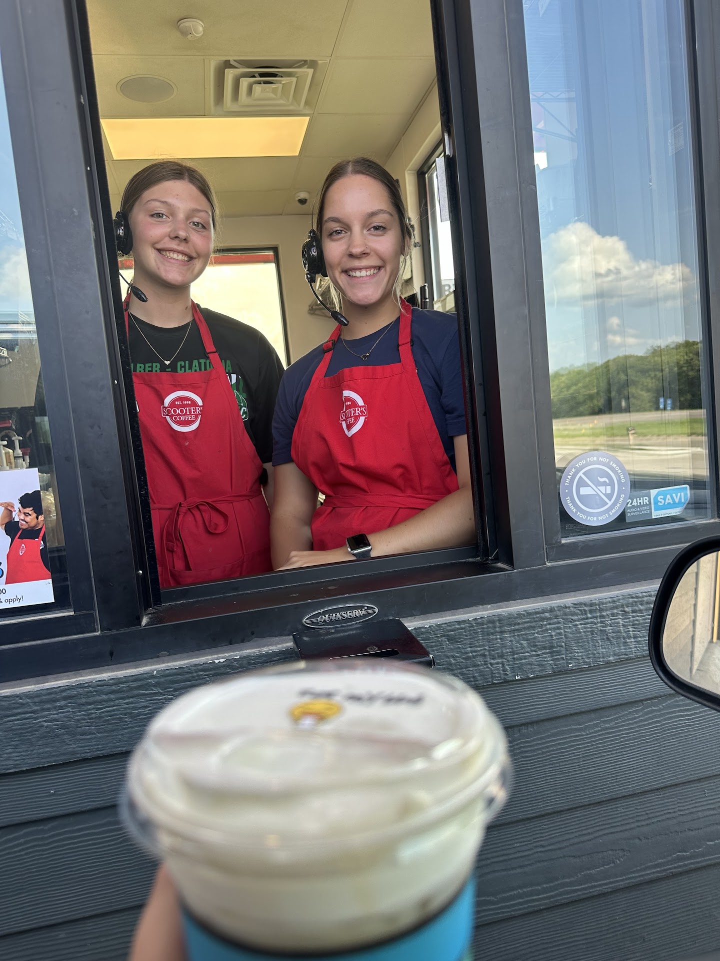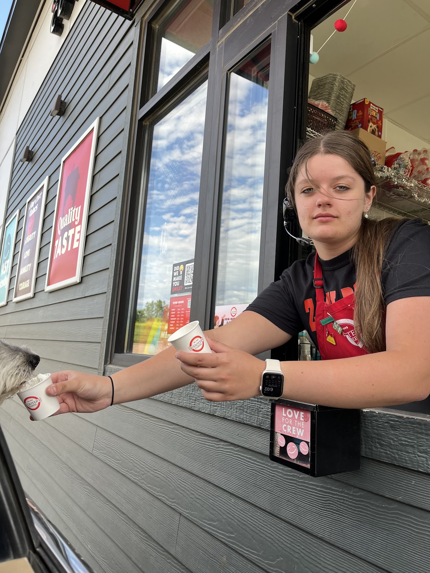 Scooters coffee. You guys have some excellent coffee. I stayed at the hotel at the top of the hill and they had no hot breakfast, no breakfast at all really. So my daughter and I walked down the hill and was hoping for a little cafe but to my surprise it was just a drive thru. But that did stop us. Your staff was still eager to help us out. We walked around to the menu and was greeted with a warm “ hi, how may I help you”. The pumpkin spice latte was very delicious and my wife’s cold brew was very tasty. My wife did not care to much for the turkey sausage but I did enjoy it. Food was very pleasant and hot. We all started our...