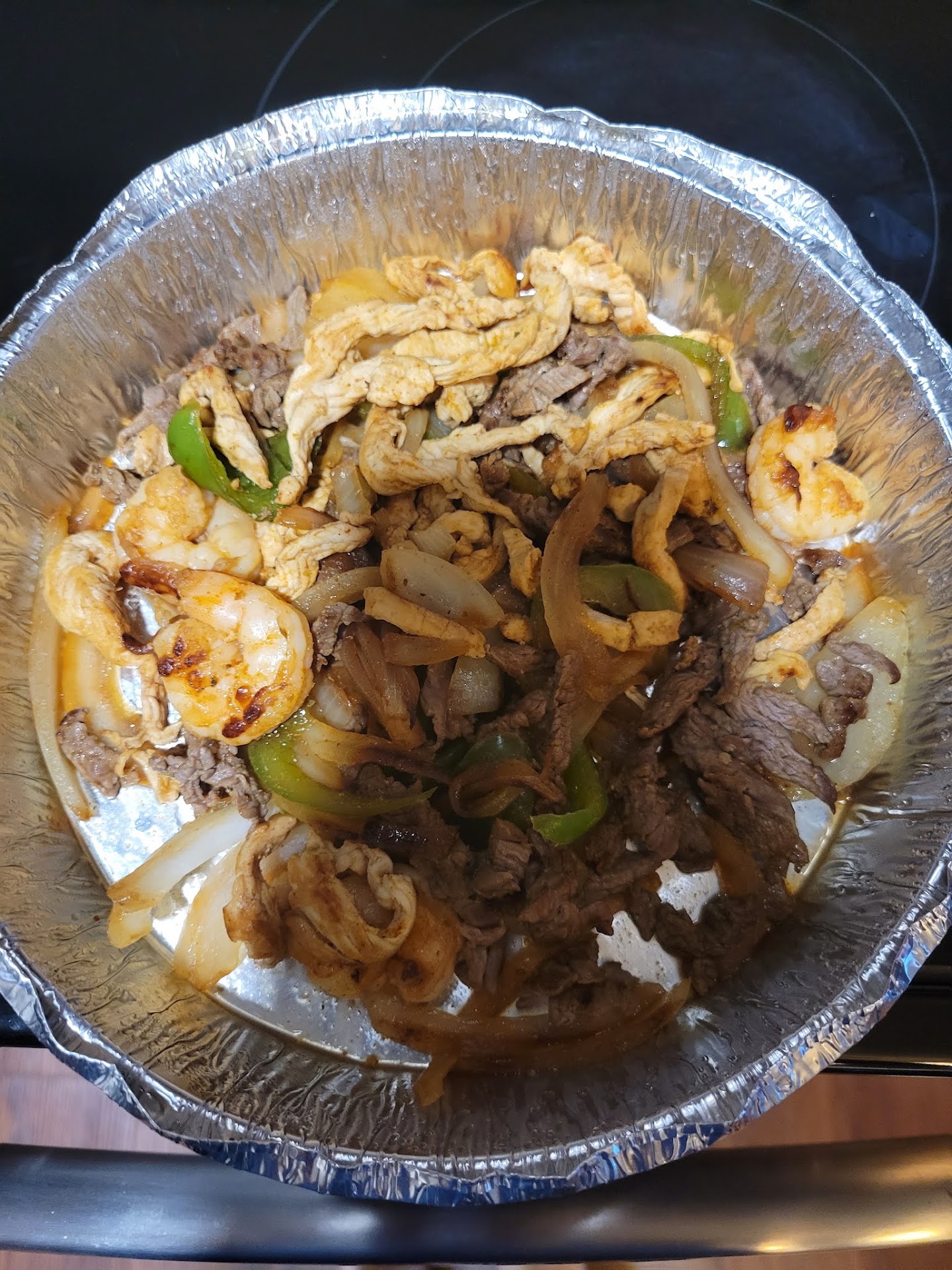 The meats/shrimp had no flavor. There tasted to be no seasoning on the steak, shrimp and chicken. If you wanted to make 3 fajitas, you would get 1 baby shrimp on each, a tiny amount of chicken and steak, a slice of onion and a slice of green pepper.