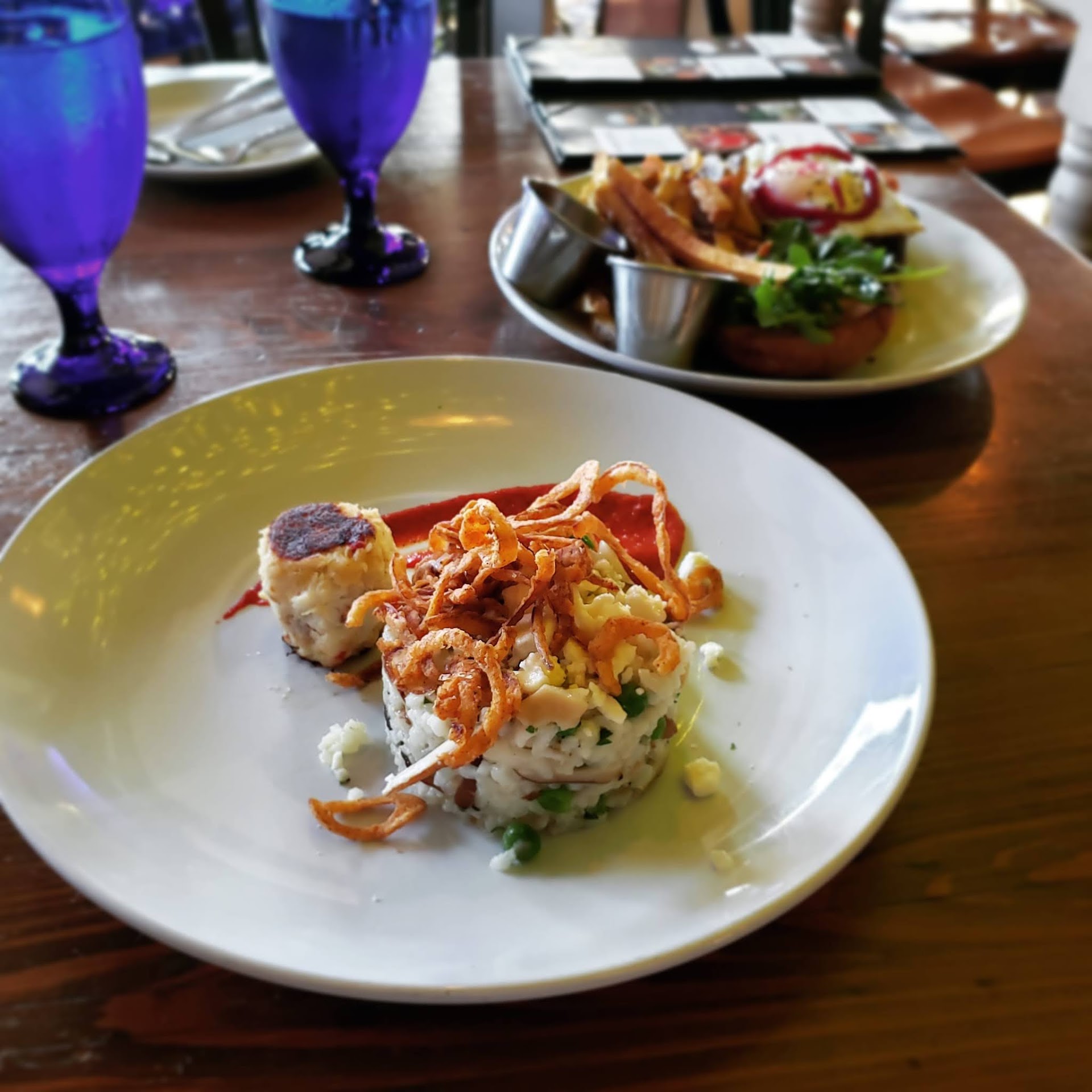The menu is an enticing mix of appetizers, sandwiches, entreés and specials. The Corn Bisque was a standout, warm, rich and savory while the Sesame Seed Encrusted Yellowfin Tuna Nacho was good, it lacked excitement. Tempura Asparagus were executed poorly with a batter that was not light and crisp but rather more like a pasty coating. The Crab Linguini had a rich, tasty coating of sauce but I could not detect the crab. The Kale Caesar Salad was enjoyable as are all of the salads. The Market Steak is a prime cut of strip that was cooked medium rare with a nice char and tender to the tongue. Sadly, Shrimp and Grits fell short of the mark. Burnt Ends are a satisfying comfort food and Cobalt delivers a hearty plateful. Desserts were acceptable but we had already eaten way too much.