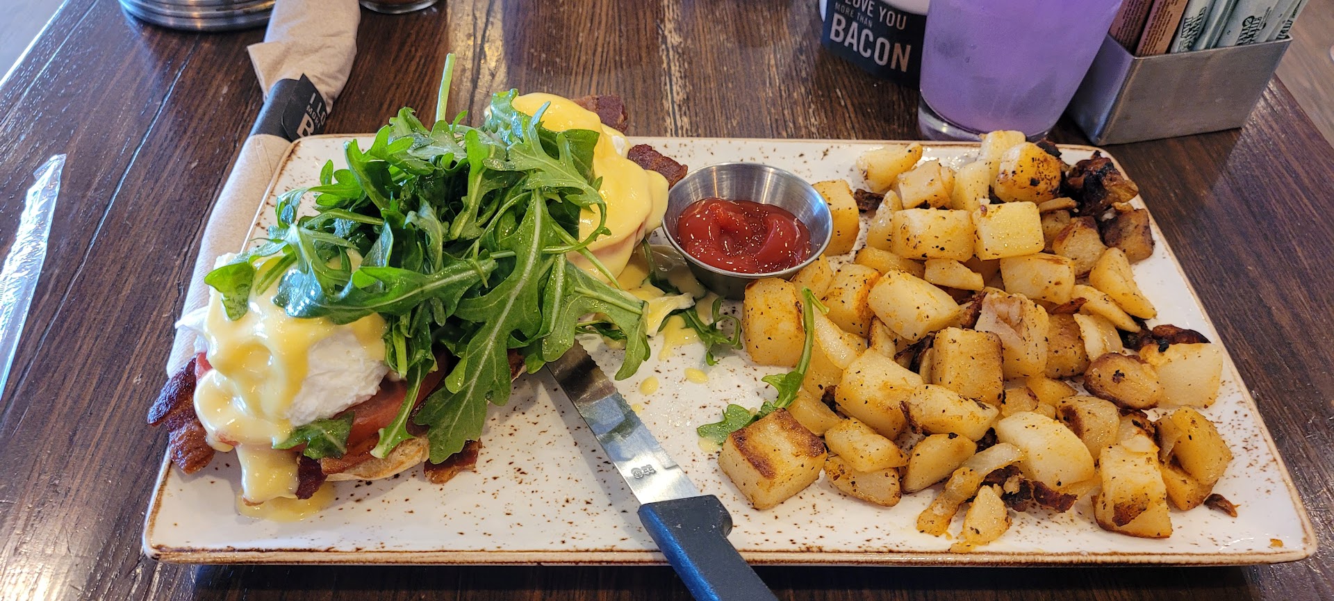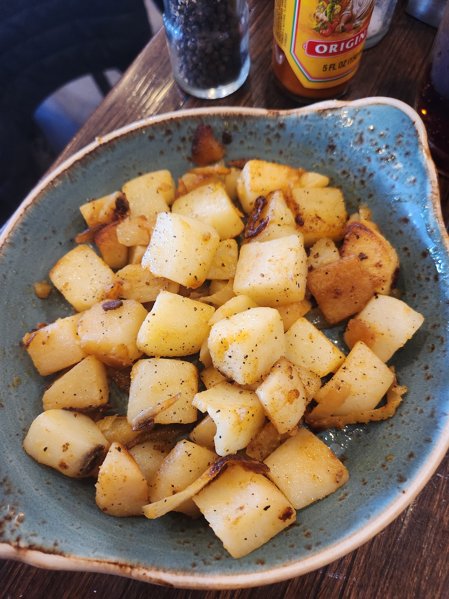 After being a regular customer for years I don't think I'll ever eat at any of their locations again. When it first came out, no one compared to their food in my opinion. Food was always great and came out fast. But now the food is mediocre, over priced but still comes out fast as ever. And I think it's because their priority is to get you out and get the next table in as fast as possible. Profit is the priority, not good food and service anymore. Which is very unfortunate. Everyone I know gave up on this place a year or two ago, and it was me that was always beg them to come with me. Until my last 4-5 visits with 3 different locations, and it's always the same. We know refer to this place as the home of the Raw Potato. You can only get them burnt, or raw. I've been on the busiest days so many times, and 10 mins after I order here comes my food (which is usually a great thing) but the million dollar bacon I got was just well done bacon with syrup on it (upcharged for no reason), and the potatoes were so hard on the inside. I have told them multiple times I don't mind waiting longer to have my food cooked how it should be. But they don't care they wanna get you out and get the next table sat. So you can poorly cooked food because of it. It's way too expensive for all that! And I've never, never seen a manager walking around or had a manger ask us how our food is? You can tell the cashier when you leave about how bad your food is, and they'll "say sorry to hear that, that'll be $54.86" lol. This place went down hill fast. Plenty of other options out there if ya don't wanna make breakfast at home. But this place needs to quit ripping people off and hiding from being help accountable for it. Look how pale the potatoes are in my picture, they weren't even cooked hardly. Over $50 for two people and all I enjoyed was my waffle soda and the eggs kind of. Never got to speak...