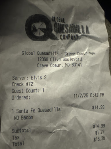 Ā Ā Ā Read moreIām reaching out to share a very disappointing experience I had with the employees working the Sunday night shift at your location. I placed an order for a quesadilla without bacon, but when I got home, I discovered that it had bacon on it anyway. I had to drive all the way back to the restaurant for a replacement due to this mistake.