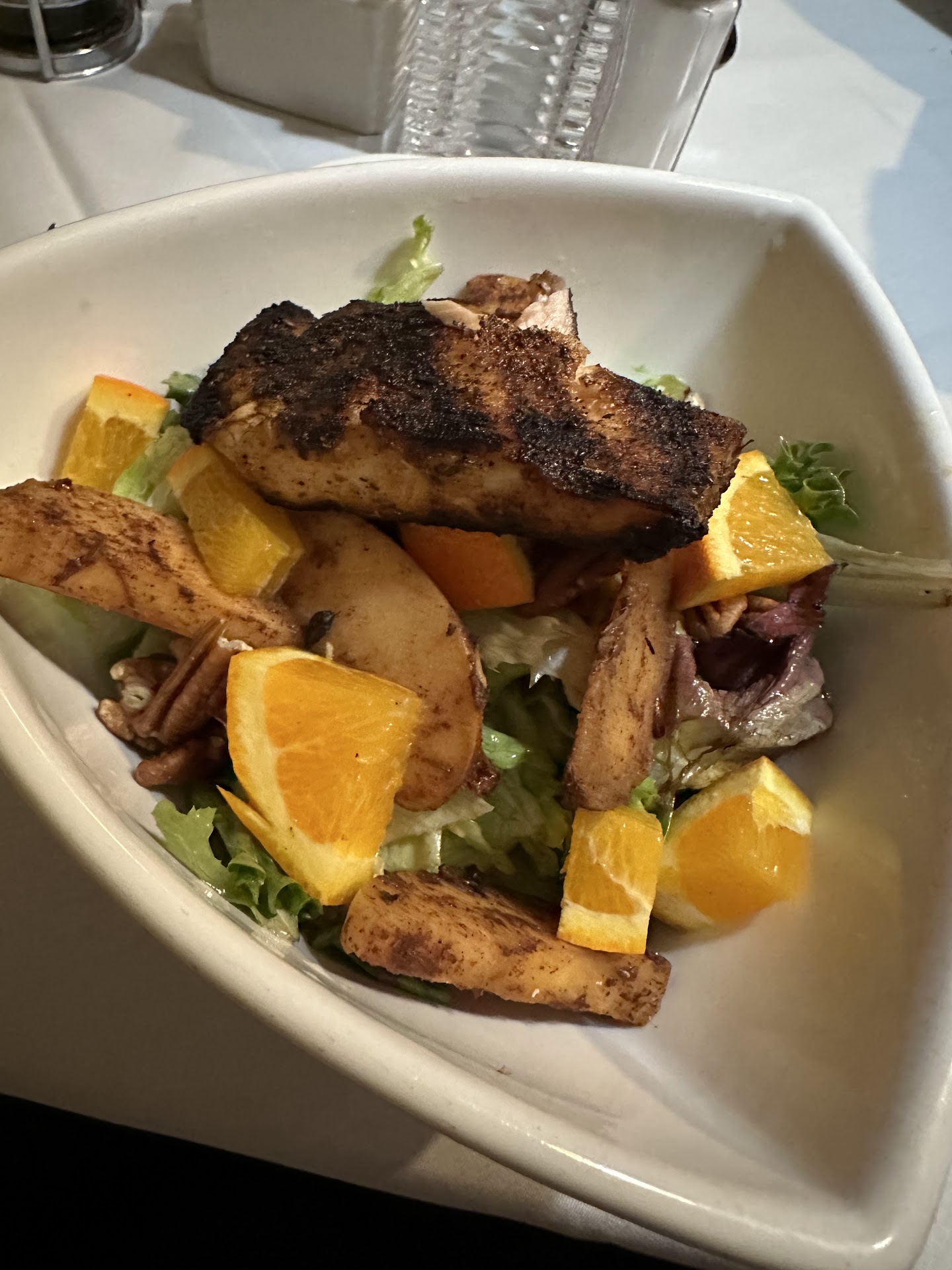 The bartender, Cat, eventually came to take our order. I asked her about the doneness of the salmon in a dish I was considering, and her response was shocking: “It’s not going to taste like chicken.” I couldn’t believe she assumed I was asking if salmon tastes like chicken. I felt insulted and frustrated by her comment.