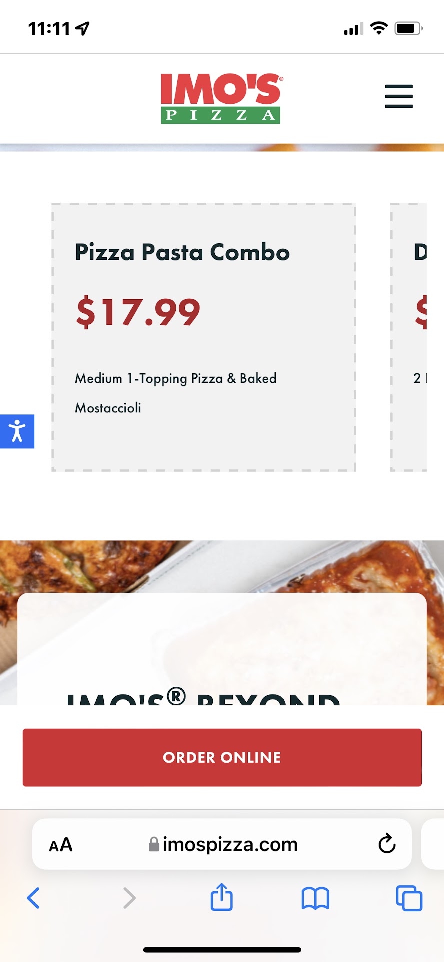 I Love Imos pizza 🍕. I went for lunch 🍴 and man oh man it was yummy 😋. The staff was very nice and the customer service was very professional and fast. They greeted me and talked to me after I placed my order. I got a 10inch pizza 🍕 with a soda 🥤. The food was nice a and hot and I enjoyed it. I have always loved Imos pizza 🍕 ever since I was 5 years old The bathroom I will say could of been cleaner and when you run a fast food restaurant, I personally think it needs to be clean every two hours . It wasn’t super dirty but it could been cleaner 🚽. The parking lot is small so Parking maybe will be a problem. But if you get there early then you will get a spot. The inside os nice. They have a candy machine for the kids and a fridge with soda 🥤 for sale. The Restaurant is located in a mini shopping center. I would recommend this place to eat for anyone. It’s a good place to grab a bite to eat.