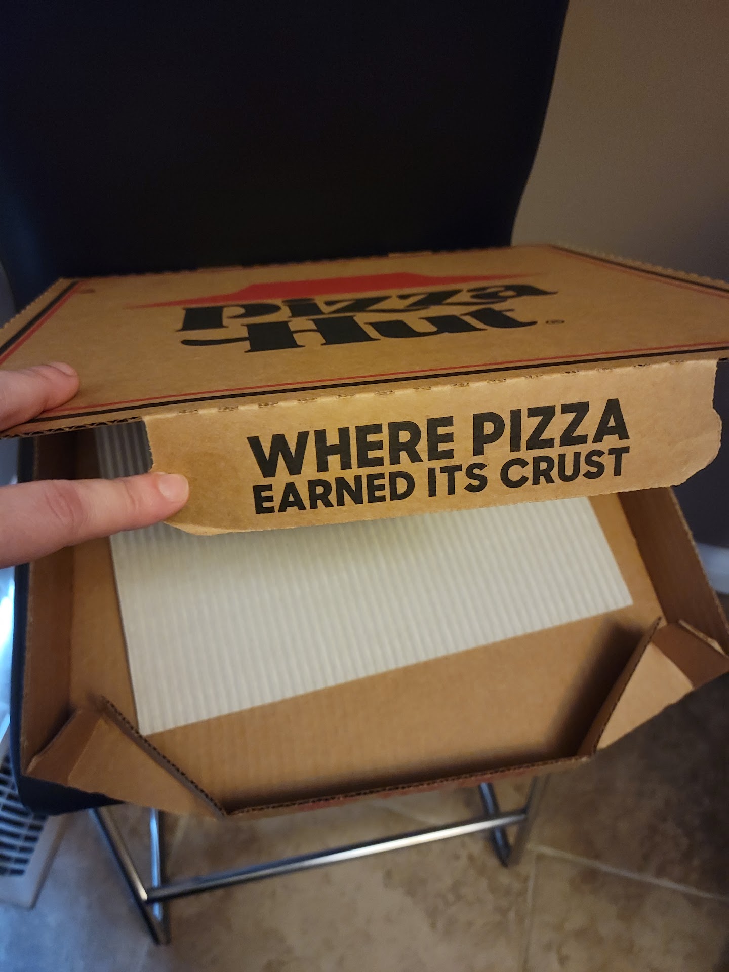 Read moreThis location consistently provides the best Pizza Hut products, period. Usually get a pizza and sometimes either a 2nd pizza or boneless wings. Everything is always very fresh and tasty. We usually get delivery and recently it's been really quick and the food is extremely hot and fresh - we do live ~7 minute drive from the store. The wings we got tonight were the best ever and they were crispy, saucy and tender. I will also say this and intend it as a compliment - a while back, delivery drivers for the store were in short supply. A delivery order was taking a little longer than usual. I called to check on the order. Manager politely explained that delivery would be extended delay and invited me to pick up order and provided adequate consideration (refund of delivery fees, etc.). This Pizza Hut restaurant "gets it" and provides great food...