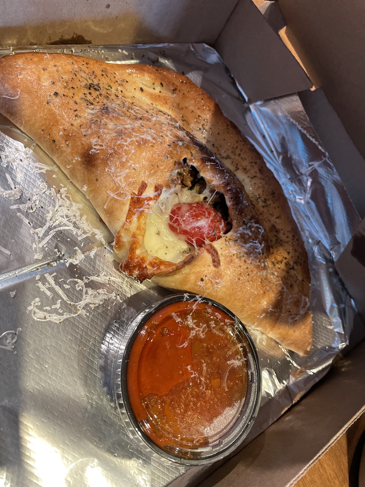 Read moreService was super courteous, fast and accurate. The guy was helpful, made suggestions and was very friendly. Place was clean, including the bathrooms and team looked organized and ready. The food options are pretty cool - all different calzone styles for every taste bud! We throws the Meet Me in St Louie and the Pesto Chicken. We also too home a colab they were doing with Thomas/St. Louis Blues. Very tasty and excellent dough and crust. Several team members thanked us for coming and said goodbye as we left the restaurant. Good experience so we will definitely return when in...