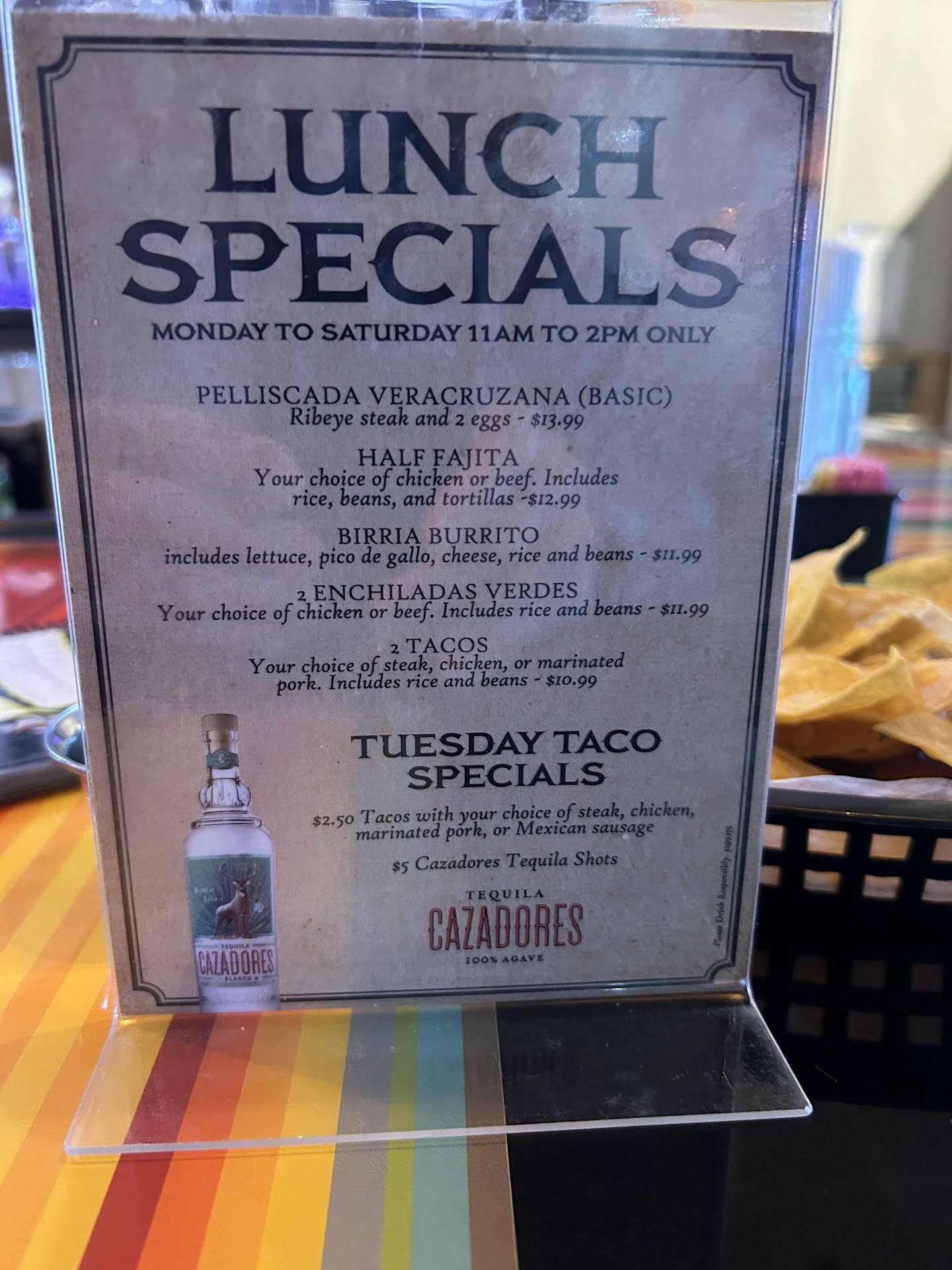 Read moreUgh. Drove from Eureka for dinner, i've had good experiences with other Tradicionals. Walked in no AC on the hottest day of the year. I read recently from a restaurant owner that if the menus are sticky and dirty immediately walk out. I wish I would have their menus were disgusting. Entrees and drinks that were delivered twice we're not ours but other tables. The food was bland uncolored, nothing fresh. No lettuce, tomatoes the guac or sour cream. I'm not sure how you messed up guac.. it was bland warm, and i'm really worried we're gonna get sick tonight, didn't eat much of my entree. My husband ordered quesadillas.I'm not sure how you mess that up. I seriously would have had a better dinner at taco bell so disappointing dragged my husband out there because of past experiences at other locations. 70.00 dollars. One marg. One club soda, quesadillas and one of their new steak and cheese, enchiladas. Will...