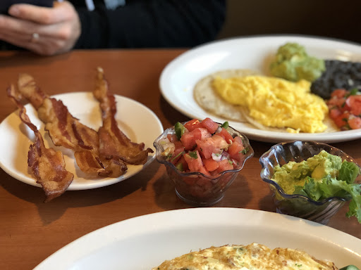 Food: Their menu was extensive as are all diners, they had gluten free/dairy free options which ROCKED! No GF bread however--not a deal breaker as I don't eat that anyway and they do not have GF pancakes, however there is a substitute - Potato Pancakes. I ordered a Veggie Egg White Omelette with feta instead of cheddar and bacon. For sides I requested pico de gallo with smashed avocado and greens instead of the toast and home fries. My husband ordered the Fresh Huevos Rancheros sans cheese/sour cream. He wanted tater tots, but from experience, most tater tots are mixed with flour. We had asked, aside from cross contamination with the fryer, if there was any way to see if they had flour, she was quite honest and said no one in the kitchen was going to check the bag and see if it did since they were so busy; he ordered home fries instead with a side of bacon. Food was served promptly. Taste was great and definitely more than enough food--we packed ours to go.
