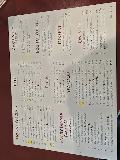 Food: Very high quality, unique, not the same as many chinese resturants out there. The food here is steps above quality wise of most places. I've had chinese all over the place and its rare to find something of this caliber. I can only really think of 1 other place i've had that was of similar caliber but Hong's still takes the cake for me. Depth of flavor profiles is incredible in their sauces, you can taste all the diffeeent layers of what makes the sauce what its supposed to be. It's not some one dimensional, this is supposed to be General tso type of thing. Idk if they make it home made or what, but all their sauces are so good.. The quality of the meat is excellent. The breading on chicken is crisp leading to a a perfectly tender and juciy piece of chicken inside. No such thing as a dried out, overly breaded, meats here. Or that common" heavily sauced and it is supposed to be chicken" style everyone has had. That type of chines isnt even really bad, its jiust really average and forgetable. it can be bad, but usually its just ok at best. Hongs is leagues above that.