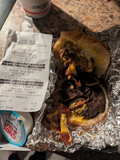 Read moreI'll start by saying the one in WV where I live is great. The one in Myrtle Beach was horrible. Starting with the guy not wearing his headset right and each of us having issues hearing the other. When he fixed that we placed our order. Pulled up and I watched them make only part of the drinks. I let him know. Then he handed me the food, and several (4+) items were missing. I let him know exactly what was missing. He told me I didn't order them and had to charge me again. I checked receipts and not only had I ordered it but as charged for it too. I tried telling him multiple times what was wrong but he acted like he couldn't understand me (he is American btw). I'm pretty sure he was high. I gave up. Long story short I paid over $50 for about $30 worth of food, and he STILL screwed up the order and we had to go to Taco Bell next door where they were super polite and even gave us straws for the drinks we got at Cook Out as they didn't give us any. Would ABSOLUTELY never go to that location again if in...