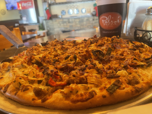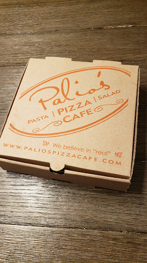 I go into nit-picky depth here so I'll say up front, THE PIZZA WAS TASTY. Thin crust BBQ Chicken with tortilla strips. The medium is cut into 12 little squares. It was enough for 2 and a little left-over. Our service was not great, however. The girl who waited on us did a literal drive-by to drop off our pizza, and it wasn't busy. She never asked if we needed anything, but instead, plopped our pie on the table with a scowl, and dashed away, tray still spinning. Then she resumed cuttin' up in the kitchen with her friends. This was our first Palio's experience. I honestly thought it was an independent restaurant, so my expectations were probably unreasonably high. The exterior is so nice and has tinted windows, I was expecting a Greek/Mediterranean little place with cloth napkins and real menus. Obviously that's not what Palio's is, so I'll try to separate that from my experience. You order up front, like Newk's or Panera, and receive a number for your table. The menu was a big chalk wall with a Wylie Coyote drawing. I honestly had a hard time finding the pizza options but apparently there were paper menus at the counter. The staff up front was friendly and welcoming. The interior of the restaurant seems conflicted to me. The atmosphere is reminiscent of Cici's: Scooby Doo on one TV, baseball on another. 2 of the 3 TVs were in Spanish. The decor feels somewhere between Carino's and McAlister's. French posters are on the walls, there is nice paint and stained wainscoting. The booths are relatively comfortable except for how shallow the cushions are, you can feel the wood underneath. The light fixtures range from Mason jars to assorted glass bulbs. Paper napkins. Overall, not what we expected, and probably won't be headed back there, but like I said, the...