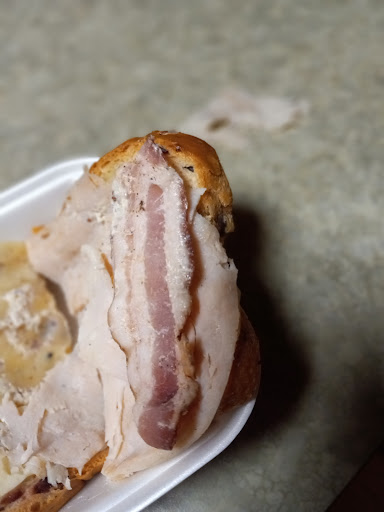 I had a turkey, Swiss, tomato,bacon sandwich on cranberry bread. The bacon was raw. I told my sister don't eat the bacon it is not cooked. I never complained to waitress or anyone there. On Friday night took half of it home nothing tasted done in sandwich barely Toasted or grilled. The next night went there fir meat raffle and ordered more food I had walleye tacos they were wonderful. But my receipt was my sisters for $11.05, her receipt was mine and husband's $38.00 something I asked if the waitress could correct that she said she would. Right after that the manager came out screaming at us about always complaining. I told her I just want my receipt so I know what to take out of checking. That it was her waitresses that messed up our receipts. I asked to talk to the owner who came out screaming and yelling at us telling here I will give you $20.00. To stay out of here for a month. I told him I just want my receipt. He accused us of being rude to staff and everyone. I told him I rarely come in there I don't drink or get rude with anyone. He chased us right out the door in front of everyone. And said I told them the bacon was raw the night before. ( It was raw see pic below) the staff must have heard me tell my sister. And lied about it. He was very rude to us and I will never go in there again he was like a wild man and I was scared of him all over a receipt!! Horrible...