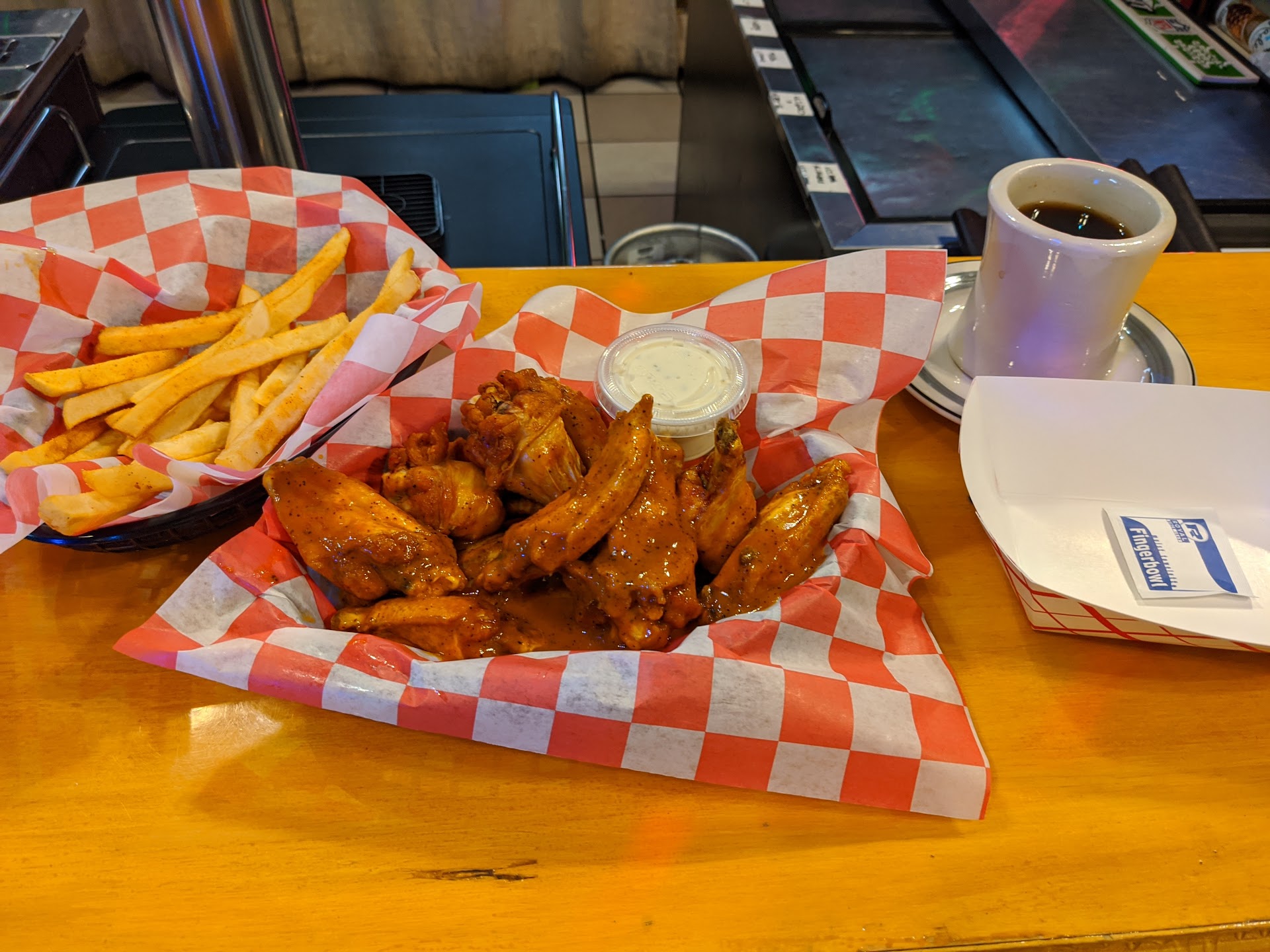My entire meal drink, wings, fries, and desert came out to 20.77 after tax which is quite reasonable for how much food there was. Attached is a copy of the receipt.