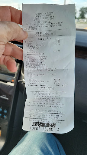 Read moreStopped this morning, I'm not a DD regular, but I ran in for breakfast before heading home 5.5 hours away. There was a new girl training, the girl training her was doing a fantastic job! She was courteous and kind to me and the trainee. I could hear her explaining in detail what needed done and how to do it. She was the only one on register inside. It was busy in the drive thru and they had ample employees taking care of them as well.