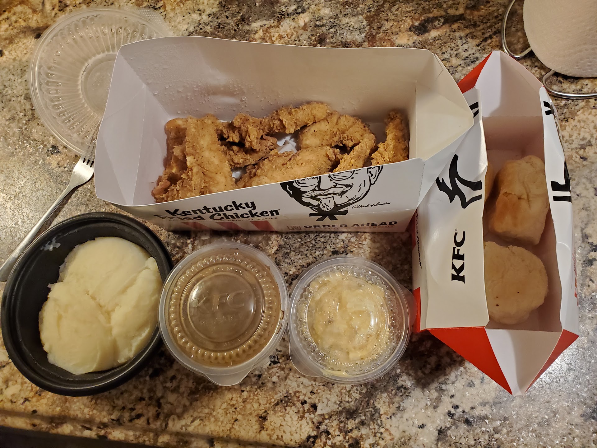 Ordered a three-piece Wing meal combo asked how much three more wings would be they were more actually than the three piece meal they wanted $8.99 for three little wings so then my husband orders it says he wants a two-piece and tells the girl what he wants she was a little slow on the uptake but that's neither here nor there the manager comes up interrupts and without even knowing what our order was start telling the girl what to do and what to give to give us. The manager gave my husband a three-piece instead of a two-piece and I said fine no problem we'll go with it but then I asked for an extra piece of chicken, a leg which I paid $3 for or I was supposed to pay $3 for and she the manager turned around and told the guy packing to give my husband two legs and a breast well needless to say I did not get my extra leg. I ordered mashed potatoes and gravy and corn, the mashed potatoes and gravy you could tell had sat out for quite a while the corn looked and tasted like it had been there for a week which I didn't eat I threw away it just was all around a bad experience. If Harlan Sanders was alive today he'd be very disappointed in the way Kentucky fried Chicken is run I know he's rolling in his grave thinking about how high the prices have gotten and how the employees are not trained in...