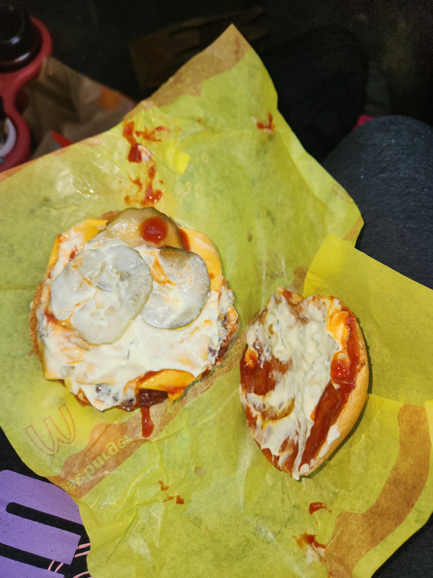 And the Quarter Pounder⊠When bitten into, the meat Crunched! Can you say over cooked?!?! I took it up and asked for a new one. I got it after âcooking a new oneâ. Bit into it and it was still burned and this time very over seasoned. Went back and was told a manager would make it. They brought it out and it was edible. Still over cooked though. The temperature and/or timing to cook on the âclam shellâ is off a lot or they have the wrong item selected to cook.