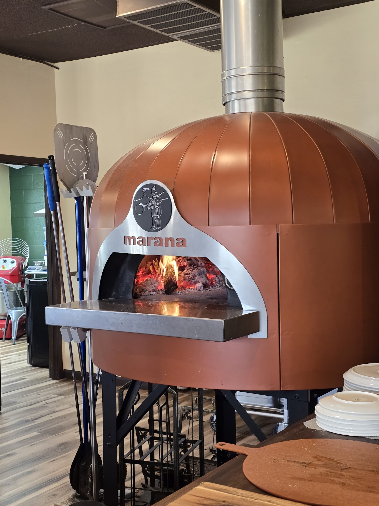 Ā Ā Ā Read moreFirst time visit. Supreme Pizza was okay...the olives really made the flavor pop. Nicely turned edges from the wood fired oven, but the bottom nit cooked enough. Maybe the oven was not hot enough. Service was just okay, as they do not have table service. You place your order and pay at the counter and grab a soda from the cooler. I'm not sure if they offer cups of ice...didn't see any with a cup. Super small tables with not enough chairs. Hated the small, cold steel chaies from a hilds school classroom. They need to offer better. There is no atmosphere there... just the pizza oven in the middle of the dining room. Oh, the large pizza was only about an inch larger than the small pizza. Next time, we'll just order a small to share. I had high expectations goibg in, but left a bit...