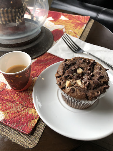 The strawberry banana smoothie yum! I also had a iced coffee with Carmel and chocolate I could only taste chocolate and the chocolate tasted like Hershey's chocolate syrup sounds good right? No it's a fake tasting chocolate horrible, and I was missing the Carmel in my coffee, that didn't matter because I ended up have to put creamer in my own coffee when I got home because it was so strong and tasted burnt. For the food I had a blueberry muffin and a raspberry white chocolate muffin as well. Blueberry muffin well done maybe no strudel top would have been better for my taste. The raspberry white chocolate muffin was also a yummy surprise except...