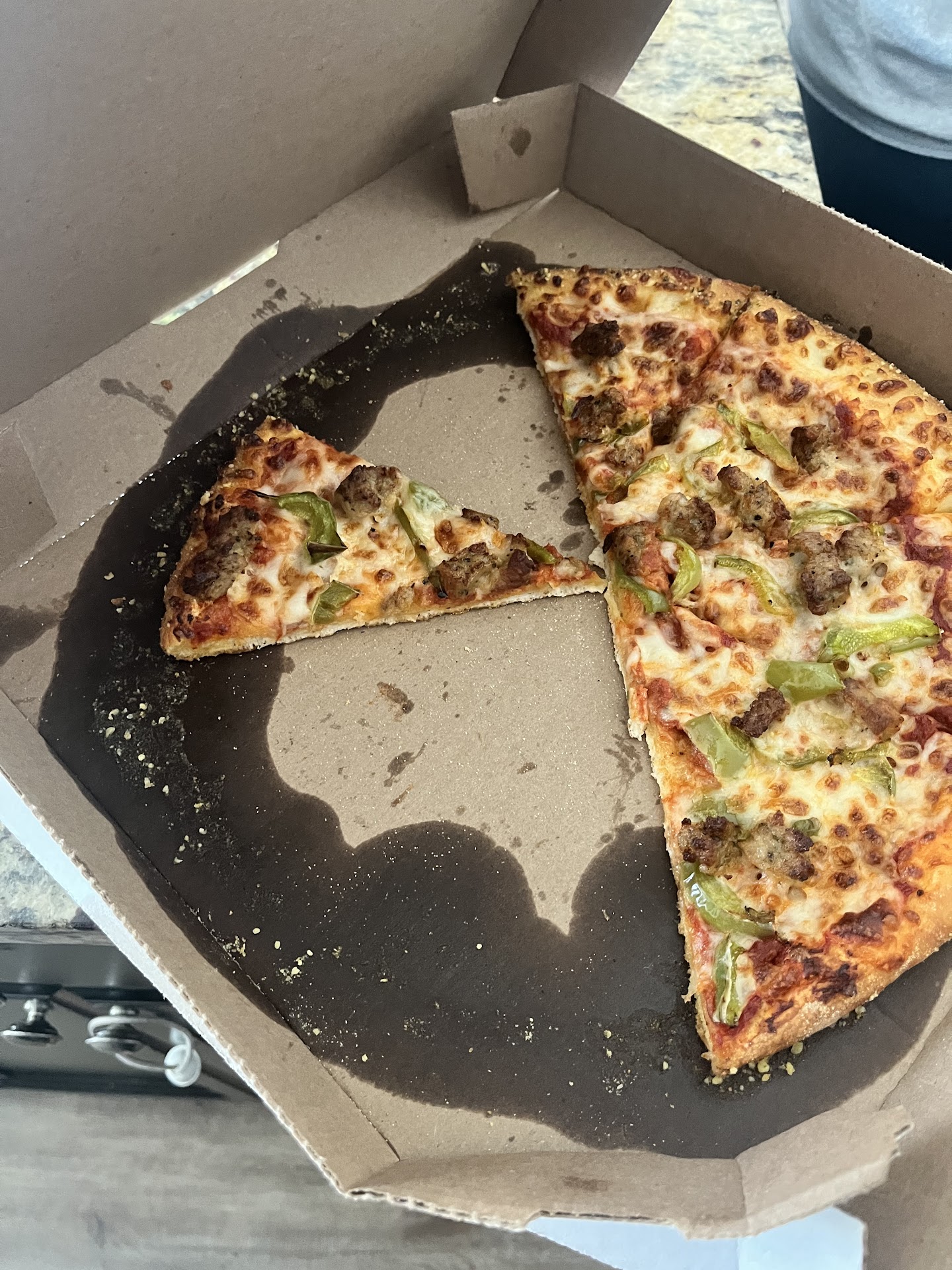 Read moreI used to absolutely love Domino's pizza, then they began tampering with the taste and developing a huge marketing campaign to let everyone know they changed everything. Apparently they thought the reason sales were dropping, was people had become bored with the taste. My opinion was the ingredients weren't consistently fresh, delivery times were terrible, leading to luke warm pizza, yet we paid full price and tipped the driver. Items were missing and the pizza looked as if it had been 4 wheeling. I say all that to say this. In my opinion they should have improved their hiring and training practice, focus on ensuring drastically improved quality assurance. So I gave them yet another chance, this time I went inside to order and take out. The pizza I got didn't have what I ordered and was charged for. So the shift leader kindly asked if i would like it remade. I said yes and got to wait another 20 minutes. This pizza came out, boxed up and handed to me with a friendly smile and a "Have a good evening". I looked in the box, and let me say, in no way did this pizza resemble any picture Domino's advertises. Skimpy ingredients not even spread evenly. I took the pizza out to my truck and began eating. It just tasted terrible, I wish I had just made a sandwich. Oh yeah did I mention I wasn't offered any thanks or complimentary anything for having waited so long.....no fault of my own. Would I...