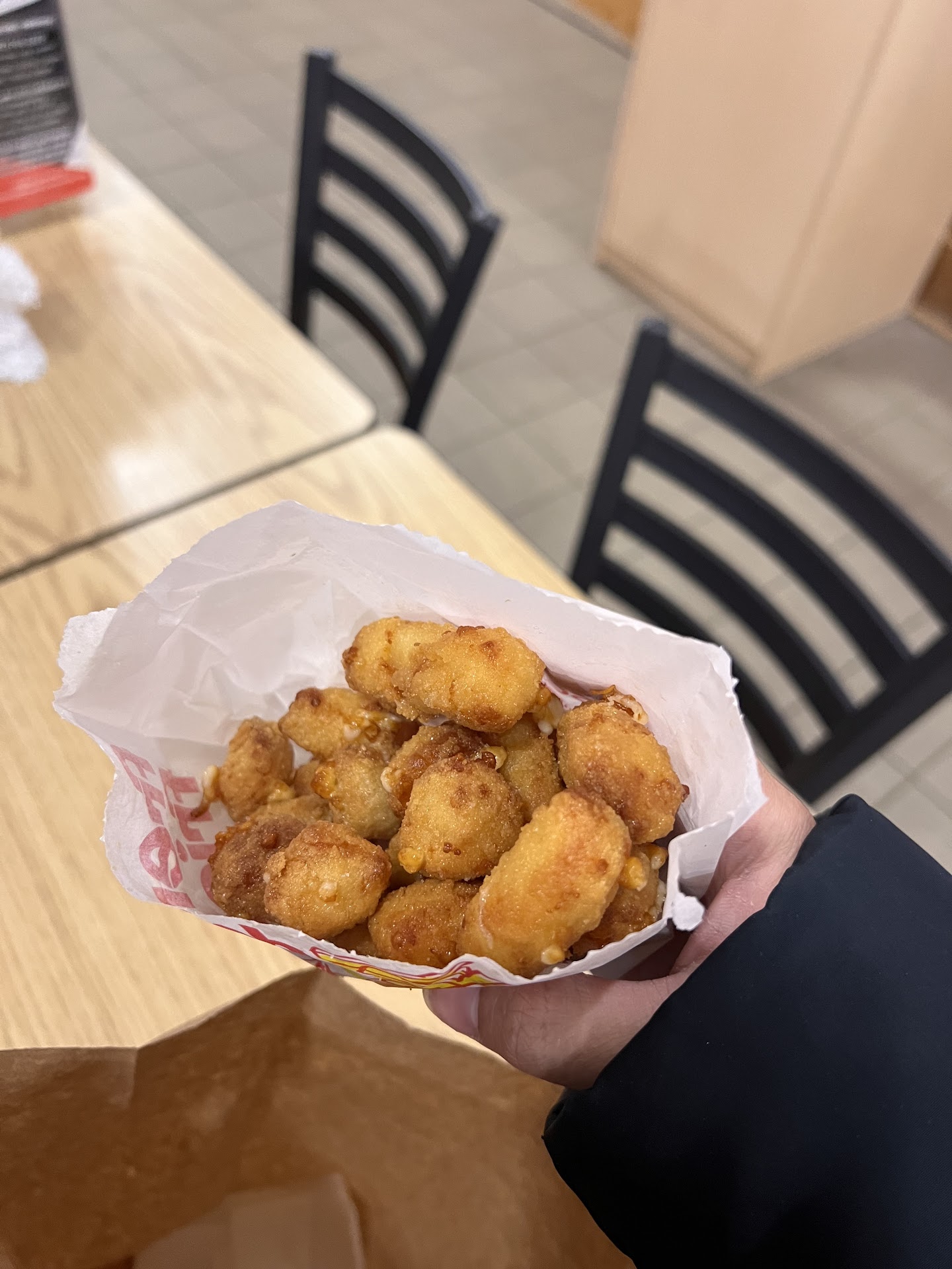Besides that, the curds had just the right amount of salt. Light, crunchy batter with a soft, yet audible crunch. The center was nice, chewy and cheesy. White (no yellow), thin cheesy center. Positive cheese pull test- very long stringy cheese pull. 8/10 for flavor and 8/10 for quality.