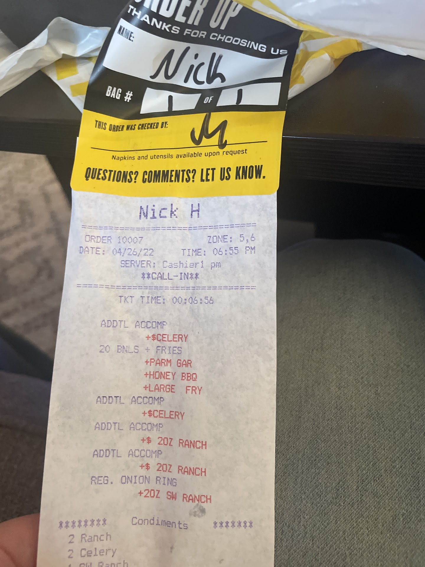 Read moreWent in for a take out order for 20 wings on 4/25. Once I ordered and paid I was told it would be 30 minutes. People coming in for phone orders were told 30 minutes and they arrived to pick up only to be told it would be another 40+ minutes. An hour later a customer asked for the manager and tryed to get a refund as he needed to get home with food for his family. She said it would not be much longer and would not do the refund. No apologies but excuses like this situation was all of our faults. "Can't you see we are really busy?" I would have offered a soda and an apology for the wait. One person arrived when I did and he asked about his pickup order after waiting 30 minutes and they told him his order was ready but it would take some time to package it up. WHAT? So the food is sitting around getting cold? I won't even mention what the grub hub driver had to go through. There were people waiting to be seated. The hostess did not take names and did not seat anyone. She eventuality got frustrated because she was dealing with the customers waiting for orders so she disappeared. Another employee came over to hostess and sat the 3 waiting parties immediately. 45 minutes after making my order I asked how much longer and that I too needed to leave soon and might want a refund. Hostess left and 10 minutes later my order was ready. lNot a well run restaurant. Manager had no skills on dealing with customers so in turn her employees did not either. I do understand places get busy but an apology with an explaination goes a long way. Yesterdsy was the NFL draft amd I think they were caught off guard by the number of...