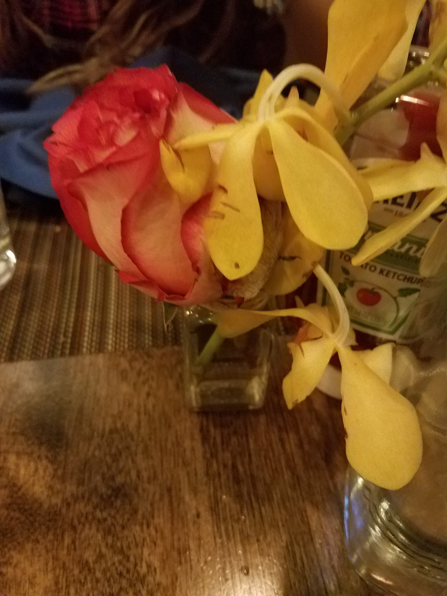 The decor was very drab, for the dining room first floor. Outside of sitting next to a window, the room felt very dark. There were ceiling lights that didn't provide much luminosity and they had nice Picasso style paintings on the wall. We liked the real flowers that were placed in each table.